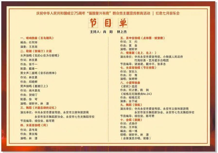 为传承弘扬红色音乐文化,创新高校音乐文化育人模式,拓展高质量校地合作、校校合作,将高水平教学资源转化为社会公共服务资源。联盟与中共永安市委、永安市人民政府,惠安县人民政府,厦门市音乐学校携手,联动当地群文团体、中小学生合唱团等,先后推出三场高质量专题音乐会,受到了当地观众的一致好评。