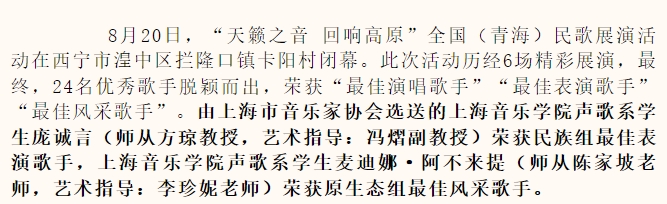 喜报|taptap点点声歌系学生在全国(青海)民歌展演中斩获佳绩