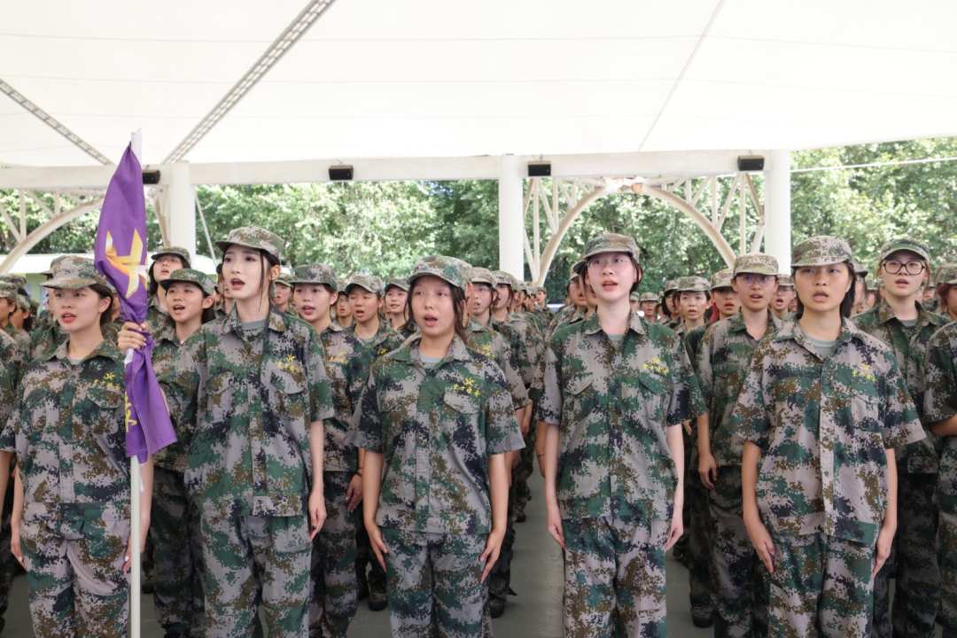 昔日磨砺,今朝起航。结营仪式最后,全体军训学员用青年之朝气、青春之歌声,向祖国、向学校齐声唱响《强国有我》。
