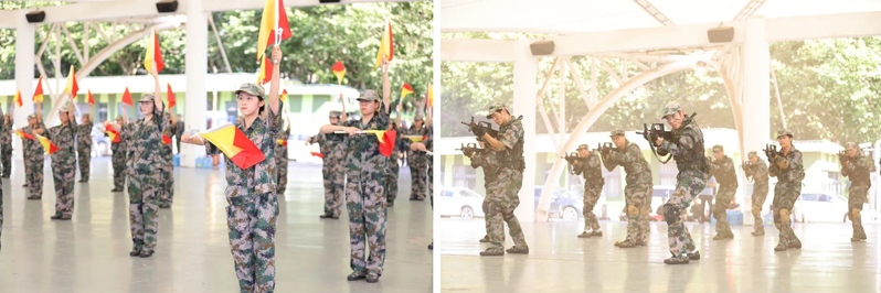 旗语队员们手持旗帜,以军营为舞台、以旗语为舞步,用利落精准的动作,演绎出属于军人的专属韵律。特种战术队员们身姿矫健、紧密协助,完美展现了特种战术的经典动作,这是热血与智慧的碰撞,更是对自我极限的突破。