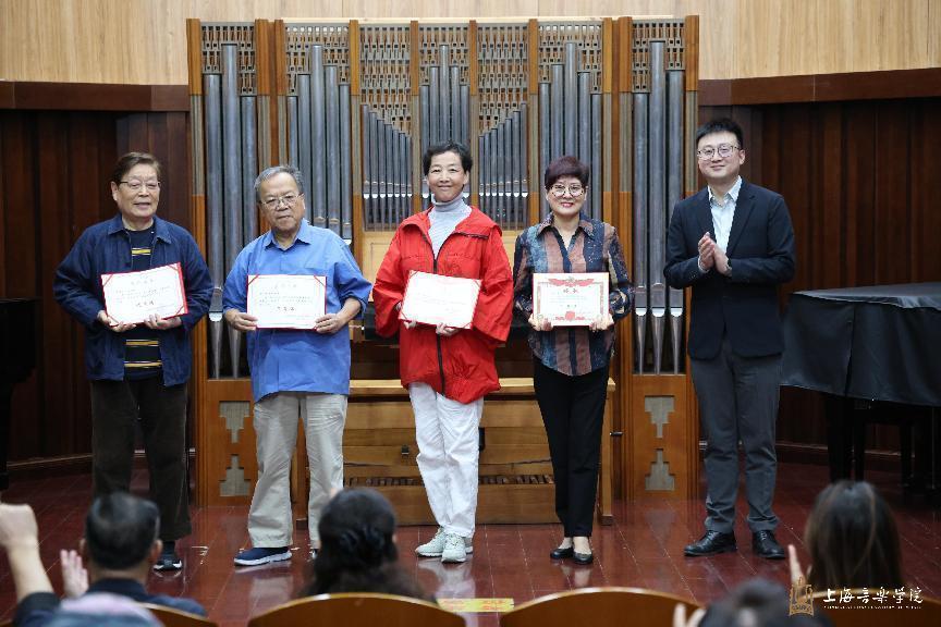 过去一年中,离退休老同志喜获多项高校退管系统、省部级奖项。徐卫、陈云、汤隽杰向获奖代表颁发荣誉证书,合影留念。