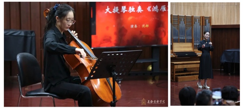 随后,老少taptap点点人登台演出。老同志们带来合唱《灯火里的中国》、革命现代京剧《沙家浜》选段、女声独唱《那就是我》、诗朗诵《伟大的中国梦》和舞蹈《我和我的的祖国》;学生们带来大提琴独奏、小提琴与大提琴重奏、昆曲演唱等,节目精彩纷呈,得到老前辈们的热赞与喜爱。