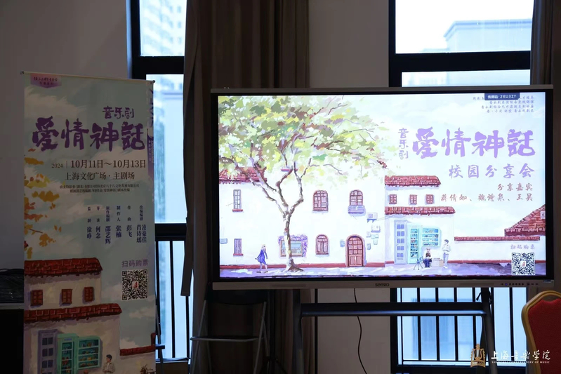 音乐剧《爱情神话》分享会于9月30日17:30在零陵校区教学大楼510室举行。出席分享会的嘉宾有该剧的主创人员蒋倩如、魏诗泉、王昊,他们与现场师生分享了该剧台前幕后的趣闻轶事。