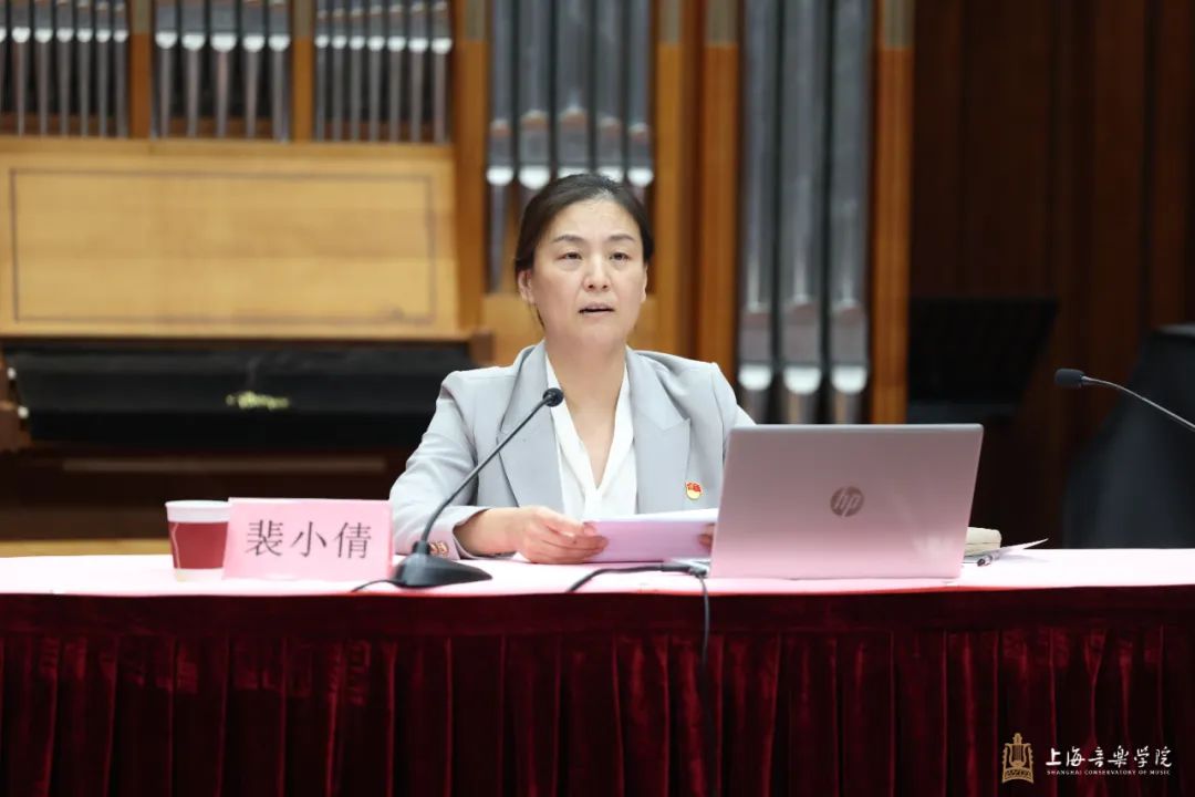 裴小倩强调,我们要牢牢把握教育的政治属性,坚持不懈用习近平新时代中国特色社会主义思想铸魂育人。要建强新时代马克思主义学院,做好上海市高校马克思主义学院攻坚提质计划,落实立德树人根本任务的关键课程,做好“大思政课”试验区综合改革试点项目。我们要牢牢把握教育的战略属性,加强德艺双馨、红专兼备、国际视野、全面发展的拔尖创新人才培养。要着力推进育人方式改革,进一步优化学科布局,加强高素质专业化教师队伍建设。我们要牢牢把握教育的人民属性,服务文化强国和习近平文化思想最佳实践地建设。要坚持以人民为中心的创演导向,努力推动双一流建设,做好校园开放工作。我们要以坚持党的领导为根本保证,全面加强学校党建工作。要把政治标准和政治要求贯穿办学治校、教书育人全过程各方面,全面提升学校基层党的建设质量,增强基层党组织政治功能和组织功能。
