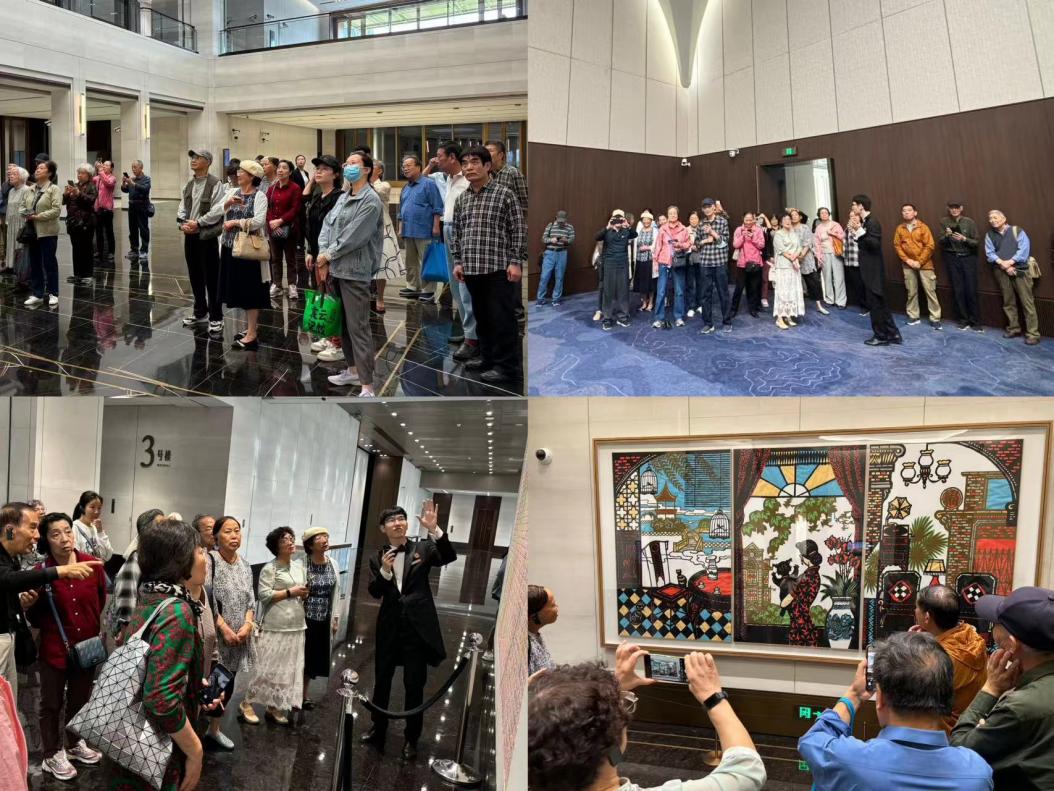 老党员们从3号楼的中庭进入,穿过回廊,依次参观了星空厅、大会见厅与迎宾厅,赞叹馆藏艺术品的精妙绝伦。登上了面向黄浦江的观景平台,感受北外滩作为“中国式现代化重要展示窗口”的发展,在巨变交相辉映的都市美景中感受这座城市的时代脉搏。各支部在观景平台上合影留念。