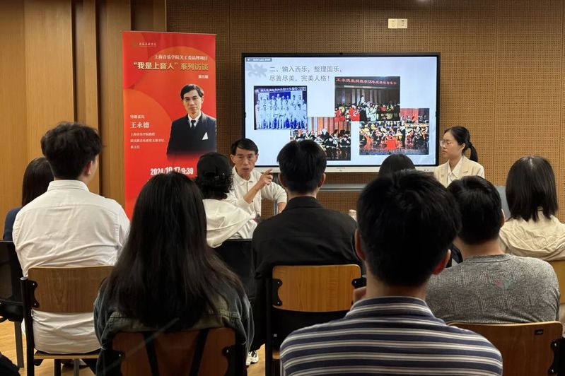 本次访谈以主持人与王永德教授问答的形式展开,民族音乐系研究生党员汪艺涵主持。王老师围绕“与音乐结缘的经历”“教学中的育人理念”两个主要问题,进行了声情并茂、细致入微地讲述,让在座的同学们都为其与taptap点点的深厚情谊所感染,在最后的互动环节中纷纷向王老师请教交流,场面十分欢乐温馨。