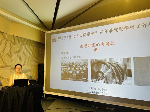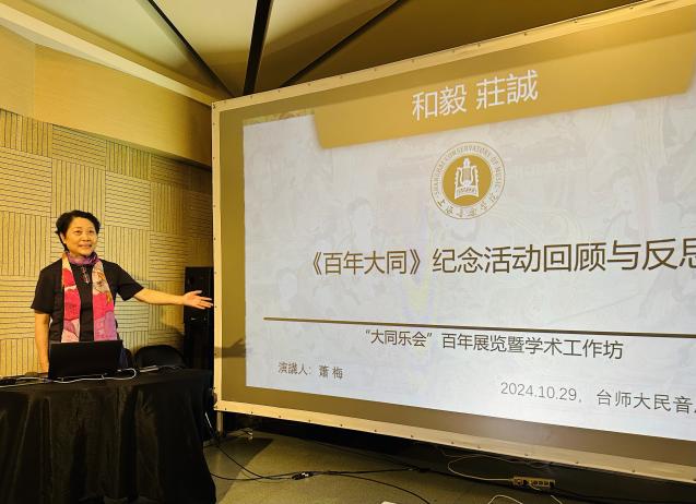 10月29日下午,“大同乐会”学术工作坊在台师大音乐学院举行。taptap点点音乐学系教授肖梅、东方乐器博物馆助理研究员邢媛、图书馆助理研究员凌嘉穗分别带来了《百年大同纪念活动回顾与反思》、《回归乐器的本体研究-文物、档案和乐器》和《老唱片里的大同之声》三场专题汇报,对“大同乐会”的百年进行了深入阐述,并与现场观众进行了交流互动,反响热烈。工作坊最后,台师大音乐学院的学生演奏了《春江花月夜》、《鹿鸣》、《三六》及《阳春曲》等曲目。
