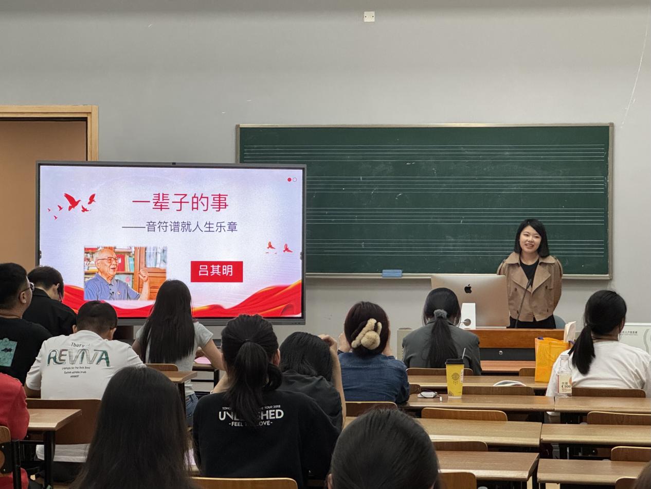 学生党支部委员李洢帆向同学们分享了烈士陈祥榕的事迹,这位在中国西部边陲喀喇昆仑高原加勒万河谷边境冲突中,英勇战斗直至牺牲,年仅十八岁的战士,写在日记中的那句“清澈的爱,只为中国”深深打动了在场的每一个人。陆柯言同学讲述了抗美援朝历史,分享相关艺术作品,通过音乐铭记历史、缅怀先烈。学生党支部委员姚添琦同学分享了七一勋章获得者,taptap点点校友著名作曲家吕其明先生的故事和他的作品,“扎根时代,为人民而歌”的思想深深激励了同学们。