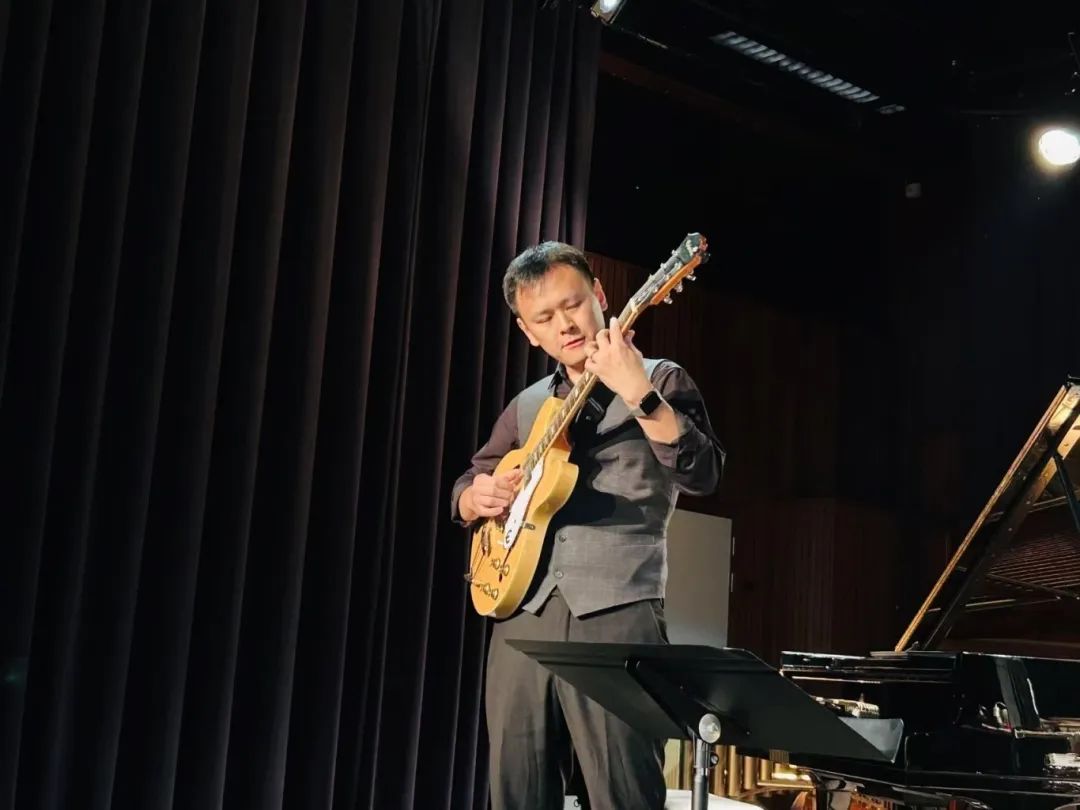 中英师生联合音乐会曲目多是李晓川和张雄关两位老师创作的中国元素爵士乐作品,融合了中国传统音乐韵味和现代爵士乐风格,创新地展现了中西方音乐的碰撞。在大师课问答环节中,现场师生向两位老师踊跃提出了许多作品创作方法和演奏技巧方面的问题。