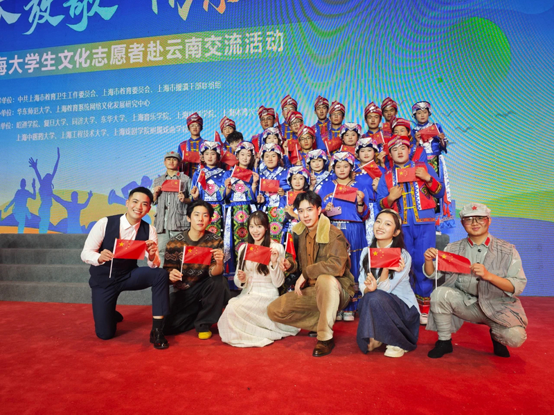 为进一步发挥文化育人重要作用,深化拓展沪滇合作新内涵新空间,市教卫工作党委、市教委和市援滇干部联络组于10月21日-26日组织上海大学生文化志愿者赴云南昭通、寻甸两地开展“青春放歌——上海大学生文化志愿者交流活动”。学校党委宣传部唐天祺、音乐戏剧系辅导员周碧雅带队进行两地文化交流。