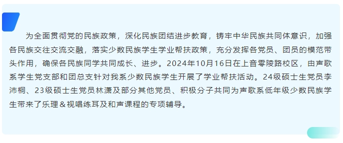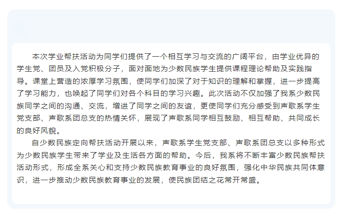 声歌系学生党支部开展少数民族定向帮扶系列活动