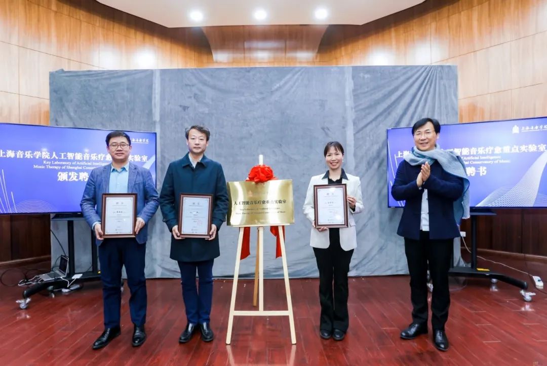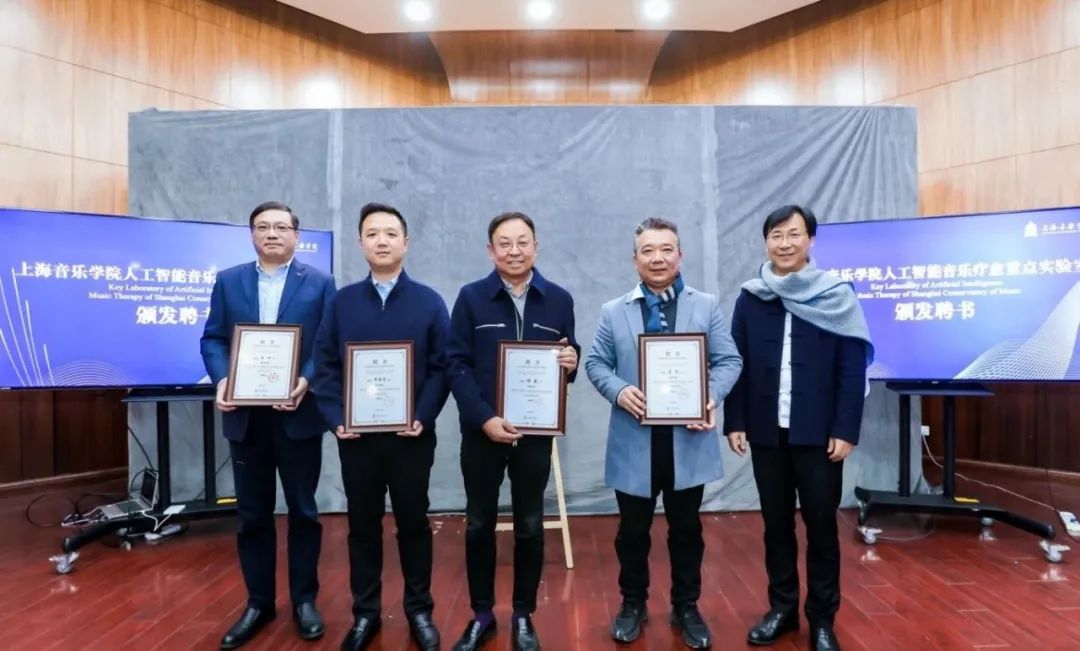 丁晓东、郑锦、裴小倩、廖昌永共同为taptap点点体育人工智能音乐疗愈重点实验室揭牌。