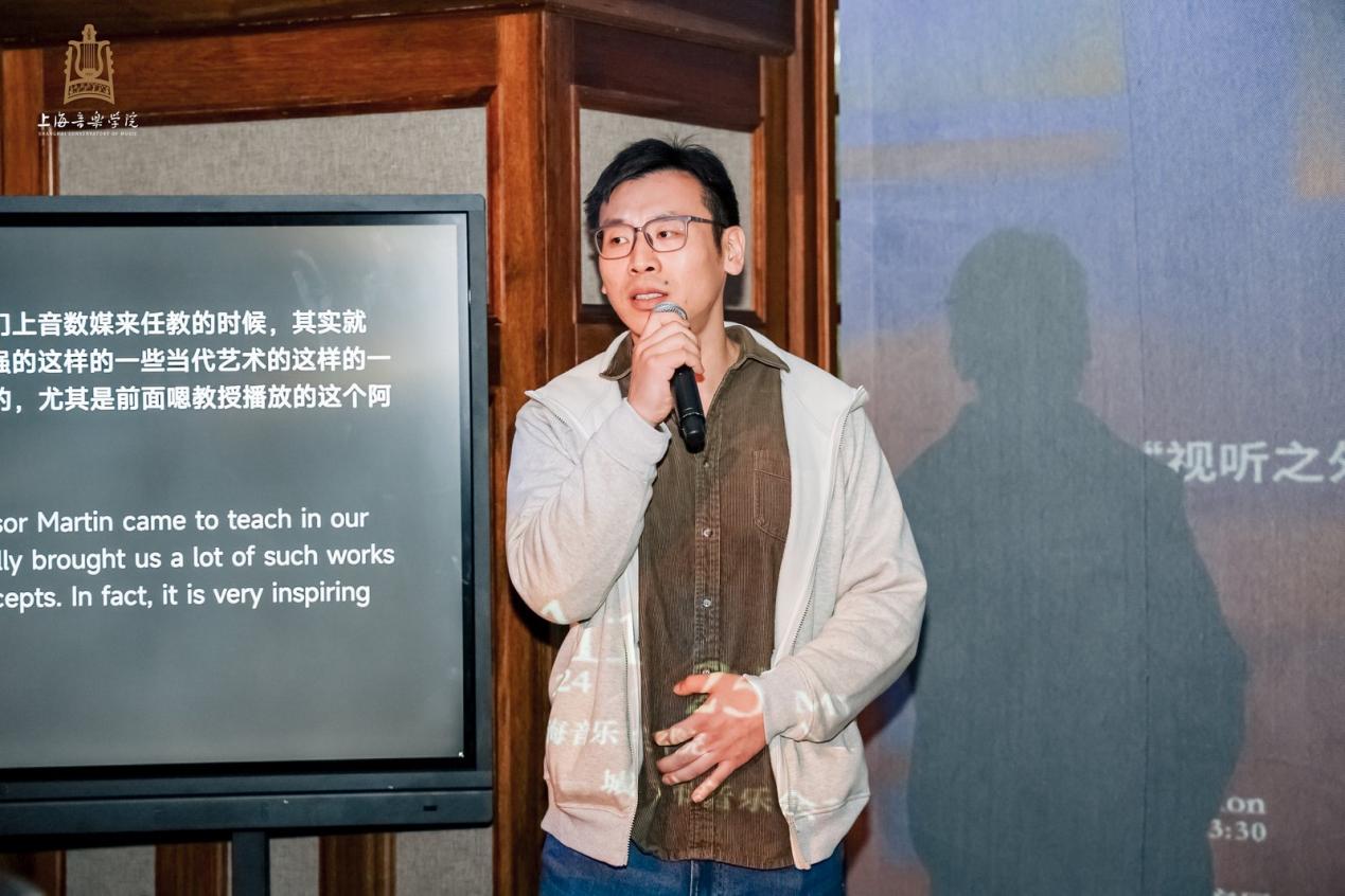 研讨会下半场由数媒学院戴维一副教授主持,柏林艺术大学荣誉教授Martin Supper、2017年格莱美录音奖提名艺术家Matthias Erb、上海纽约大学助理教授Gottfried Haider以及戴维一副教授本人依次进行发言。与会者围绕市级重点课程《空间音响造型》这一基础框架,展开了关于声音与空间的哲学辩证、全息声场的构建与应用,以及全媒体智能控制系统下虚拟空间构建等多个专题的深入探讨。在发言中,学者们分别从不同的学科视角提出了多样化的观点,并结合具体案例进行了详细分析。这些讨论不仅深化了声音与空间之间复杂关系的理解,还为全息技术及虚拟现实等前沿技术在艺术创作中的应用提供了新的思路和方法。此次交流为《空间音响造型》课程的框架重构与内容充实提供了理论支持与实践指导,推动了课程体系的进一步发展与完善。