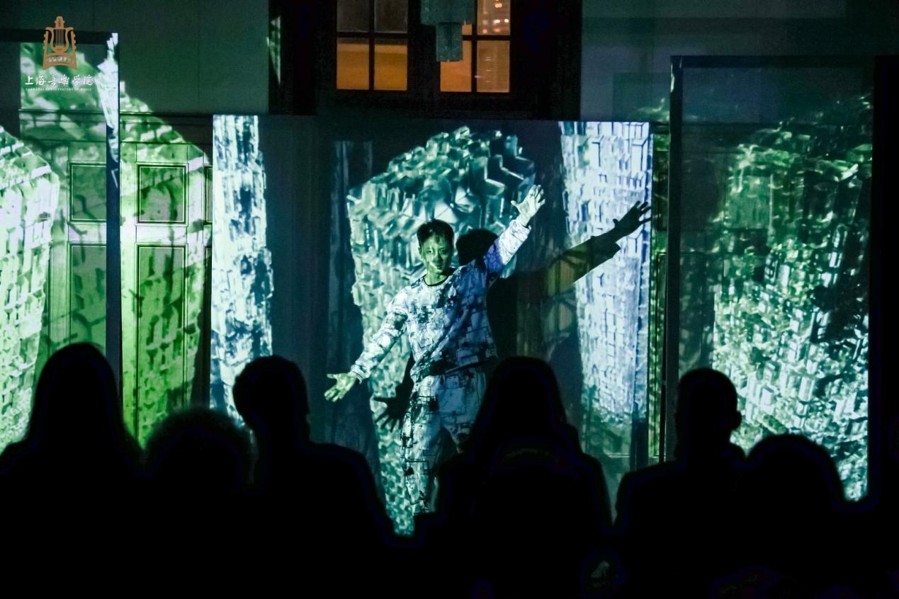 25日下午5:30,城市会客厅举办了跨媒介展演《在场》。此次展演共呈现了八个作品,展示了在两门市级重点课程的引领下,学生们对人文精神、信息茧房、数字游记等主题的深刻人文思考与跨媒介表达形式的探索。每一件作品都结合了城市会客厅独特的空间风貌,进行了不同程度的形态重构,充分体现了基于“在场”精神内涵的跨媒介情境演绎。
