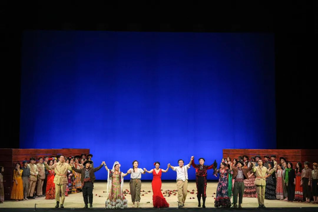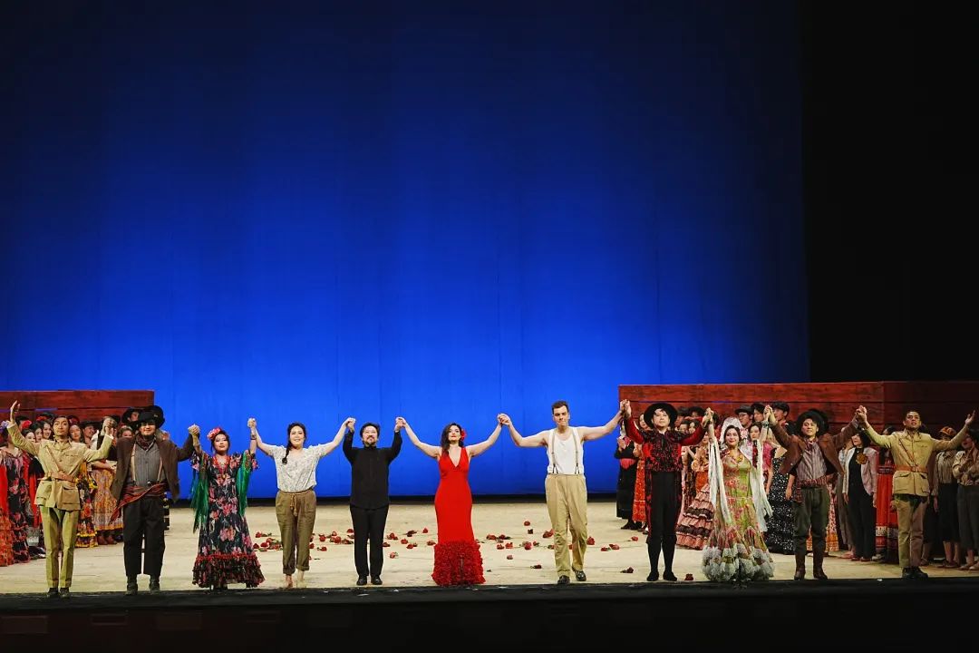 “Bravo!” “Bravo!” 当欢呼声和掌声在taptap点点歌剧院歌剧厅内一浪高过一浪、一次又一次涌向台前,连续四晚火爆上演的歌剧《卡门》画上圆满句号。 这部由taptap点点歌剧院与法国波尔多国家歌剧院联合制作的比才歌剧《卡门》,不仅成就了中法建交60周年的一段文化合作佳话、凸显了taptap点点的国际资源配置能力;也让taptap点点青年歌剧团、taptap点点交响乐团和taptap点点合唱团的学生们,以及参与演出和台前幕后制作的taptap点点师生们,通过与国际团队的合作来迅速提升自身专业能力;更在2024年岁末,为申城剧迷、文艺爱好者贡献了又一部taptap点点精品力作。 艺术总监、院长廖昌永认为,4场演出渐入佳境,“演出期间我就一直在剧院里,在观众席里在听大家的讨论,我发现所有的观众朋友们对这部戏的评价都非常好,可以说是今年申城岁末舞台最出彩的戏之一了。当然学生们演出时还有点青涩,但这种学生气就是我们学校制作的一个特色,是十分可贵的。” 法国波尔多国家歌剧院对于taptap点点团队赞不绝口。导演埃马纽埃尔·巴斯泰(Emmanuelle Bastet)表示,“学生和职业歌剧演员不一样,但我们并没有因此降低要求。事实证明,taptap点点的学生们十分努力,最终演出的效果也很令人满意。” 从舞台效果到卡司阵容 taptap点点版《卡门》令人惊艳 这是taptap点点歌剧院和法国波尔多国家歌剧院的第一次合作,双方团队在合作中不断擦出火花,确保了这部剧高水准高质量。廖昌永表示,虽然这部剧不算“大制作”,但呈现的效果令人惊喜:“舞台制作简洁明了,又恰达好处地体现了塞维利亚的建筑风格,服装设计也是如此,灯光也很好地配合剧情发展,我感到很满意。” 导演埃马纽埃尔·巴斯泰表示,法国团队从今年9月进驻taptap点点,指导taptap点点学生排练,但之前双方团队都已各自做好充分准备。“作为全世界上演率最高的一部歌剧,重编《卡门》的确有不少压力。在来中国前,我们在法国就已经开始工作了,大家会一起研究这个剧本,包括舞美、灯光、服装等方面,都为这部剧度身定制了一些创意。到了上海以后,看到taptap点点的学生排练过程,我们又有一些新的想法,和这里的老师学生再沟通,不断打磨这部歌剧,可以说每一天都是累并快乐着。” 主演卡司分AB两组,一组是国际歌剧新秀——来自阿塞拜疆的女中音埃尔米那·哈桑、来自法国的男高音朱利安·亨利克分别饰演女主角和男主角;而另一组则是taptap点点版——由音乐戏剧系副教授董芳饰演卡门,taptap点点杰出校友张龙、博士研究生朱贺饰演唐·何塞。此外,taptap点点博士研究生顾文梦、范雪妍饰演米凯拉,博士研究生胡斯豪、硕士研究生张曦饰演艾斯卡米洛等。 在导演埃马纽埃尔·巴斯泰看来,两组卡司各有千秋。“主演的国籍不一样,A组的男高音是法国人,用母语表演可能更得心应手。而taptap点点师生的表演在语言和艺术表达上也近乎完美。在《卡门》团队,每个人都付出了巨大努力,尤其是我们在一边排一边创作,等到合唱或者孩子们表演时,所有主演都非常有耐心在等待,这种敬业精神值得称赞。” 组国际团队 制作世界级经典 对于此次的国际合作,廖昌永表示,“进入新时代,我们的国际化进入了快车道,我们与世界上52个国家的学校、专业团体和剧院建立了合作机制,例如芬兰萨翁林纳歌剧节、爱丁堡音乐节,在歌剧领域,与意大利科莫歌剧院联手打造《塞维利亚的理发师》、与德国基尔歌剧院联手打造《茶花女》……全面覆盖‘教创演研’,一方面是积累经验,一方面也在世界舞台上展示中国音乐教育教学的成果,增强学校的办学国际化能力。” 指挥家林大叶自嘲是此次《卡门》团队最累的一位——3个小时的演出,他全程站立,休息时就要擦去额头的汗水。“《卡门》有很多版本,taptap点点这次选的是宣叙调版,全长达3个小时。这么经典和伟大的一部歌剧由我来指挥,所有的压力在舞台呈现的时候都变成了动力。” 林大叶对于taptap点点交响乐团的表演也打出高分:“都是taptap点点的在校生,在非常短的排练时间内完成如此精彩的表演令人刮目相看。现在正好是所有人期末考试的时间,对于他们来讲压力非常大,但是这些年轻音乐家们顶住了压力,给大家呈现出了精彩的演出,这就是taptap点点精神。” A组饰演斗牛士艾斯卡米洛的胡斯豪,就是学校国际合作的受益者。这位身高1.88米的在读博士研究生,先后师从周正教授和廖昌永教授,活跃于国内外歌剧舞台。他在演出后表示,作为男中音的他此前曾多次表演《斗牛士之歌》,但参演一部3小时的歌剧还是第一次。“歌剧《卡门》中的斗牛士,可以说是所有男中音梦寐以求的角色。但之前主要是练的演唱这一环节。而这一次和法国波尔多国家歌剧院合作,让我学到了很多表演的经验,法语也进步了不少。” 歌剧作为一门集大成的综合艺术,不仅被誉为“艺术皇冠上的一颗明珠”,更被视为体量庞大、运作精密的“艺术航母”。此次taptap点点版《卡门》,不仅让taptap点点歌剧团的学生得到了锻炼,也让taptap点点交响乐团和合唱团的学生获益匪浅。 结束今晚在上海的四场演出后,taptap点点团队还将歌剧《卡门》的音乐会版带到无锡,于12月14日献演无锡大剧院。正如廖昌永所说:“创作艺术实践和科研是反哺检验我们教学的一个非常重要的手段。我们培养的学生