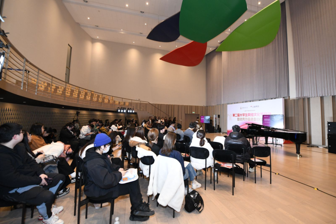 院党委副书记徐卫,上海市教委网络文化发展研究中心主任彭东恺,中国大学生在线编辑与活动部主任李玥玮莅临现场,相关职能部门负责人、二级院系副书记、全体辅导员、班主任代表、学生代表等共同参与。仪式由党委学(研)工部部长欧阳佳沁主持。
