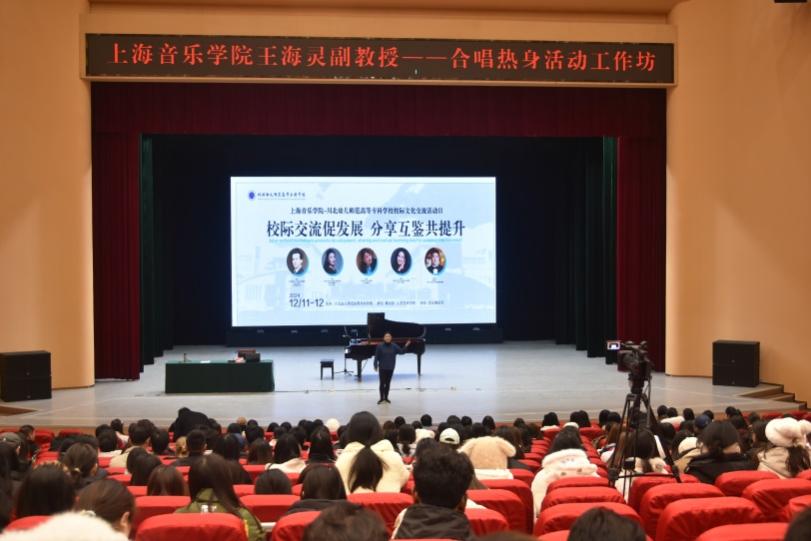 副主任王海灵副教授《合唱热身工作坊》以及指导绵阳师范学院“梦之声”合唱团演唱《将进酒》