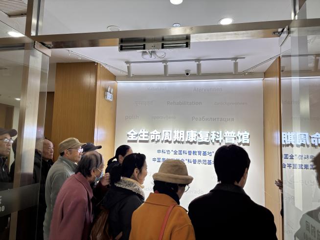 随后,上海健康医学院的老师带领老同志们来到全生命周期康复科普馆,并介绍这是上海第一个康复科普馆,该馆将康复领域的科技知识、科学方法、科学思想和科学精神传播给公众,培养公众健康素养。老同志们兴致勃勃地亲身体验了健康年龄检测系统等感应式设备,了解自己的身体状态,感受康复设备。老同志们纷纷表示,互动中心和科普馆把基础医学和先进科技进行了完美结合,通过此次参观学习和互动体验,给大家留下了非常深刻的印象,是一次科技含量很高、收获颇丰的健康科普之旅。