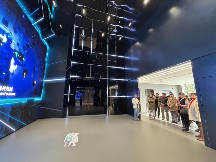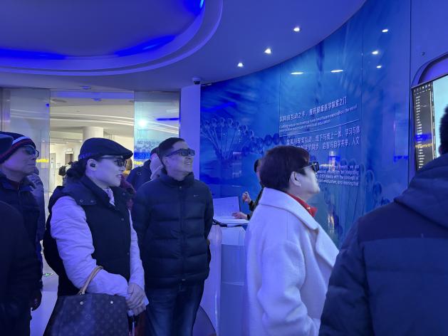 行程中,大家下车参观了张江数链(元宇宙)特色体验馆“SPSPace元境”,通过“加强版”交互体验,了解技术演进下,人、空间与城市共生发展的蓝图,畅想2050年未来智慧城市的无限可能。老同志们深刻感受到上海浦东改革开放这几十年里的巨大变化,张江科学城作为核心力量,充分发挥了科技是第一生产力的巨大作用。
