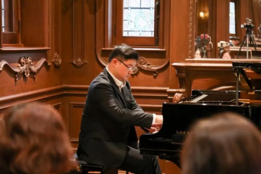 钢琴系本科生顾盼、刘奇楠演奏了由法国作曲家拉威尔改编的德彪西《牧神午后前奏曲》。音乐分享会在郝端端演奏的德彪西《焰火》中落下帷幕。