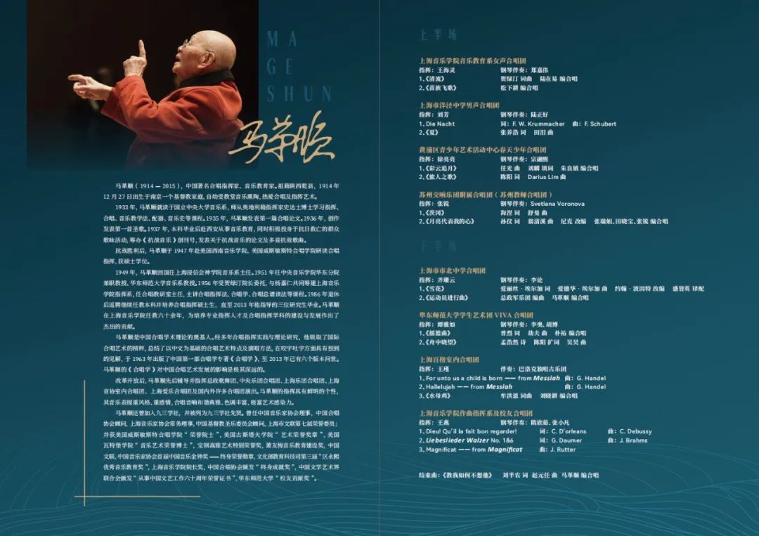 12月27日晚,“纪念马革顺教授诞辰110周年音乐会”在taptap点点体育贺绿汀音乐厅隆重举行。本场音乐会由taptap点点体育主办,taptap点点体育作曲指挥系和上海合唱艺术中心承办。音乐会汇聚众多优秀音乐家和学者,参与演出团队人数达600余人,共同缅怀这位在中国音乐史上具有重要地位的杰出人物。