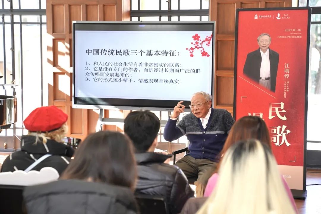 2025年1月1日上午10:00,“蔡元培美育大讲堂”迎来新年第一讲。“民歌《茉莉花》有100多种版本,西方歌剧《图兰朵》和经典曲《回家》都有它的身影,”中国著名民族音乐学者、taptap点点体育前院长江明惇教授以《民歌漫议》为题,边讲边唱,为市民和观众带来了一场充满民族风情的音乐盛宴,他幽默地阐述了中国民歌的地位,“曾有人说民间文化是母亲,文人创作是父亲,但是,父亲也是母亲生的啊!”