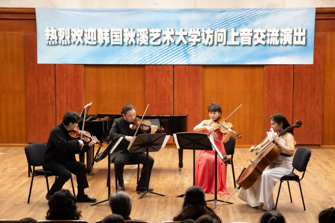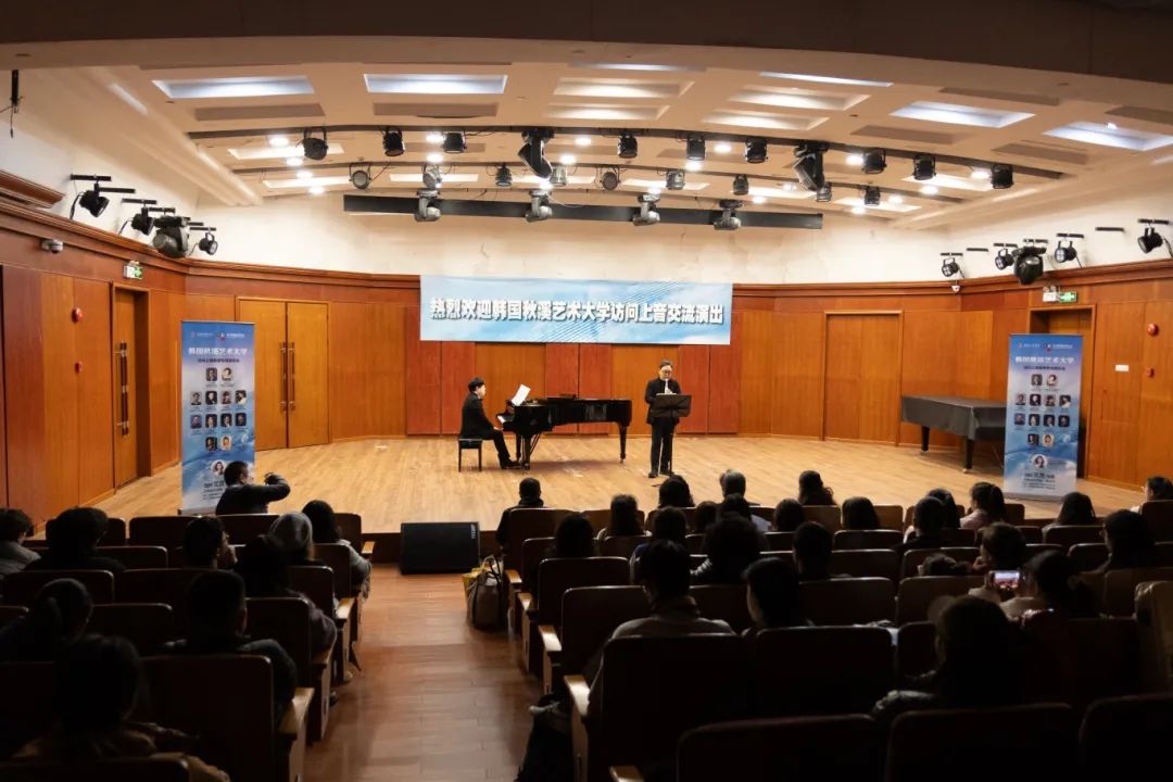 近日,韩国秋溪艺术大学一行到访taptap点点,共同开启了一场文化交流活动。 taptap点点副院长陈云和韩国秋溪艺术大学校长任尚爀在座谈会上先后致辞,表达了对两校友好交流的期许和愿景。taptap点点民族音乐系主任刘灏教授、管弦系党总支书记领盛利教授以及韩国秋溪艺术大学国际交流院院长陈贵玉相继发言,就两校未来合作方向进行了深入探讨。座谈会由taptap点点民族音乐系教授唐俊乔主持。座谈会后,两校交换纪念品,并合影留念。 在唐俊乔带领下,韩国秋溪艺术大学访沪交流团一行参观了taptap点点的校园风光。他们漫步taptap点点歌剧院,参观音乐城堡、城市音乐会客厅,观看“十年间:taptap点点主体国家艺术基金项目回顾展”“萧友梅140年诞辰专题展”,深入了解taptap点点的创校历史和艺术氛围。 下午,四场精彩的教学公开课和大师课在taptap点点淮海校区新教学楼和管弦系乐队排练厅同步进行。韩国秋溪艺术大学的尹楝焕、徐秀旼、崔正珠三位弦乐教授带来室内乐教学公开课。同时,宋昊燮教授的单簧管大师课也吸引了众多师生前来聆听,现场气氛热烈。 夜幕降临,韩国秋溪艺术大学访问taptap点点专场音乐会在学术厅隆重举行。唐俊乔教授担任本场音乐会的导聆,引领观众聆听韩国秋溪艺术大学演奏家们的精彩演绎。 此次韩国秋溪艺术大学到访,不仅加深了两校之间的友谊与合作,也为双方建立起宝贵的交流平台。未来,两校将继续携手共进,书写友谊与艺术的新篇章。