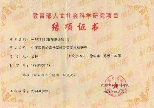 在教学研究成果方面,《音乐剧表演专业中戏曲元素的挖掘与实践》(胡晓娟教授)项目,注重音乐戏剧与戏曲元素的相互融合,获批2021年上海市本科重点教改项目。《音乐剧声乐》(李涛教授)注重演唱技术基础和角色化演唱能力的训练,获批2022年度上海市级重点课程。在学术论文发表上,音乐戏剧系教师在《音乐艺术》《中国音乐学》《人民音乐》《歌剧》等高水平音乐核心期刊上,发表《中国原创音乐剧创作体悟》等数十篇高水平学术论文。
