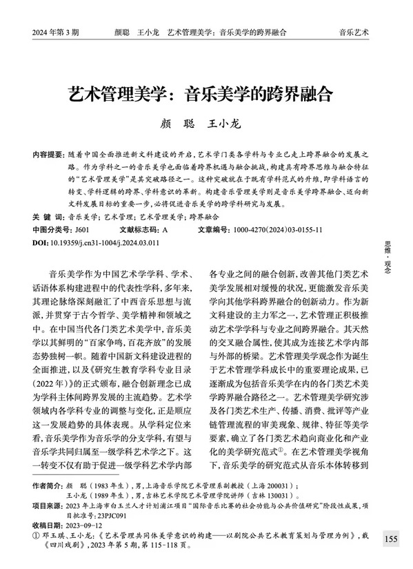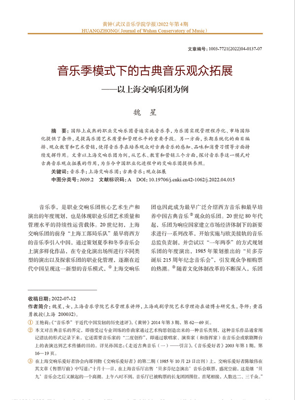 科研方面,艺术管理系不断推动理论和实践的有效融合,促进学界与业界的有机融合,取得了一系列丰硕的成果:《国有交响乐团的音乐传播策略研究》项目获得2023年国家社科基金艺术学项目立项,是艺术管理学科的重大突破;两位教师先后获批“浦江人才“人才计划项目;主持校科研项目重大课题“国际音乐节赛研究”两项子课题《城市文化视阈下国际音乐比赛高质量发展研究》《国际音乐节管理运营机制与城市发展关系研究》及《20世纪80年代上海交响乐的文化生态研究》等;主持《艺术机构内部筹融资探索》《上海古典音乐生产与接受口述史》《艺术机构管理运营与人才供需模式研究》等多项校青年人才扶持项目;参与校创新团队“歌剧与舞台艺术创新人才培养与实践团队”“红色音乐重点创新团队”“新时代中国音乐文化传承与创新团队”相关建设。专业教师在SSCI、CSSCI收录期刊及中文核心期刊发表学术论文多篇。