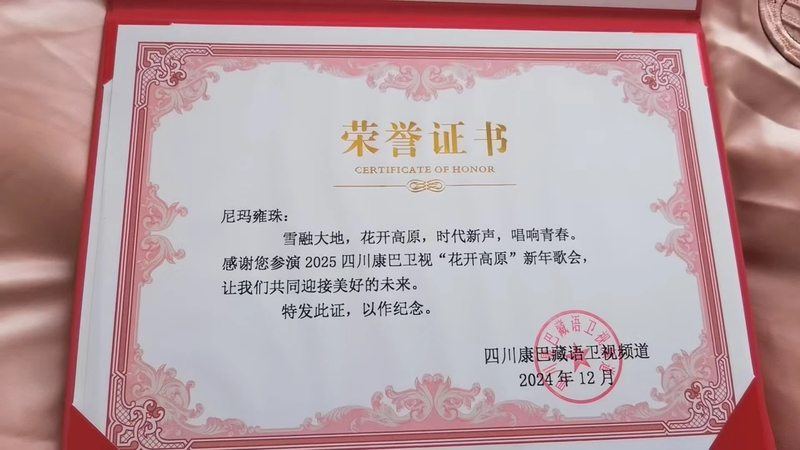 2023级本科生尼玛雍珠参演2025四川康巴卫视“花开高原”新年歌会。