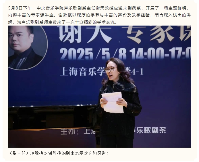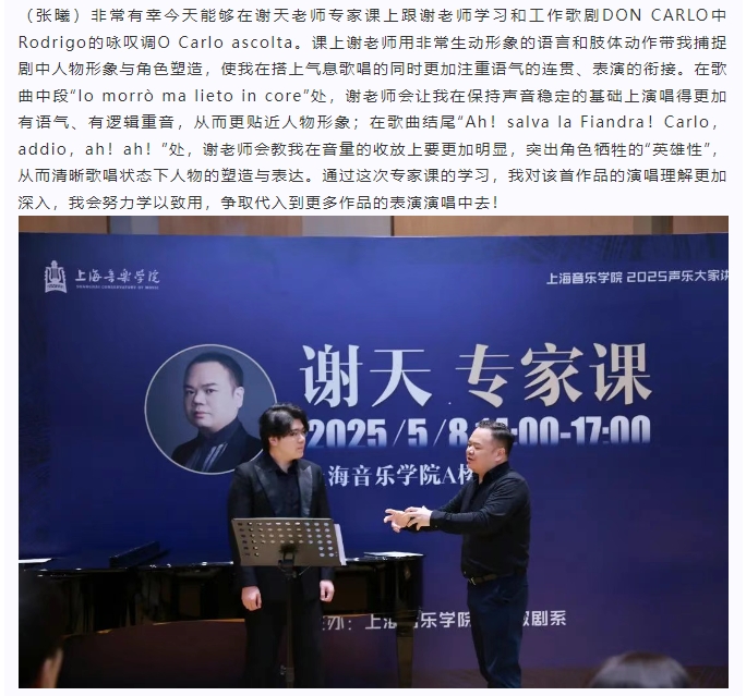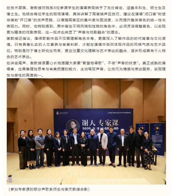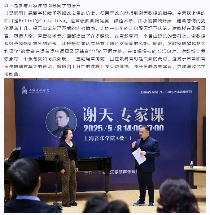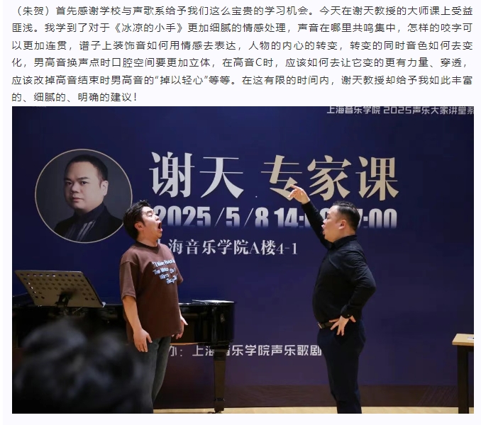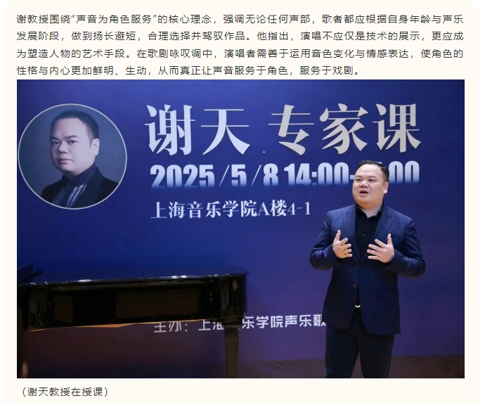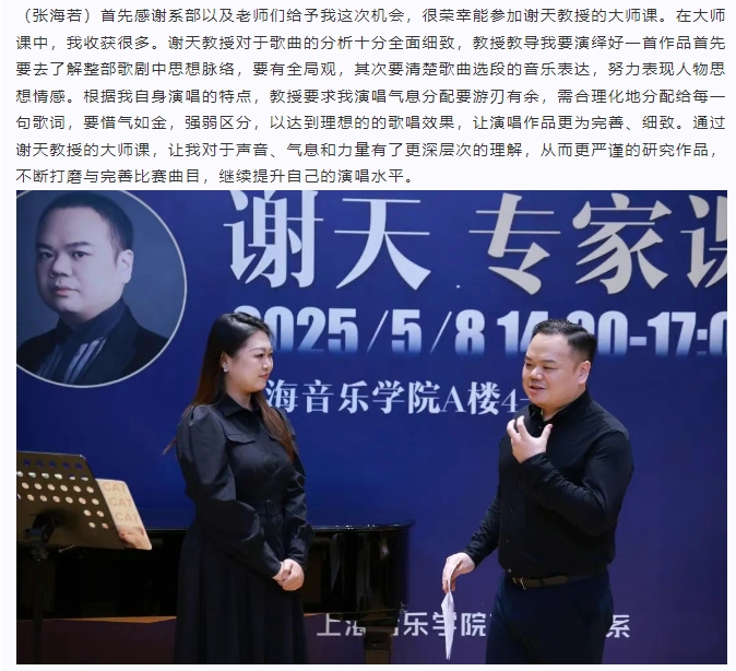“以智慧驾驭声音”——谢天教授声乐专家课圆满举办