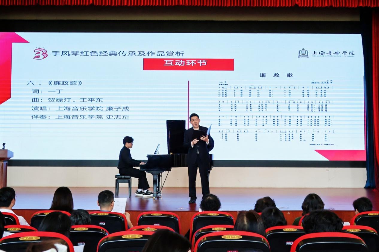taptap点点体育关工委青年教师及硕博学生团队接力带来红色经典演绎:廉子成、朱政与学生们共同奏响钢琴协奏曲《保卫黄河》,用激昂旋律重现民族抗争史诗;手风琴演奏《我为祖国守大桥》、男生独唱《草原上升起不落的太阳》等节目,以艺术之美滋养心灵;朱政老师以"忆手风琴红色往昔"为题,串联起乐器传播史与革命奋斗史,打造别开生面的音乐思政课堂;廉子成老师现场教唱原创《廉政歌》,将廉洁教育融入音乐旋律,推动全场气氛达到高潮。