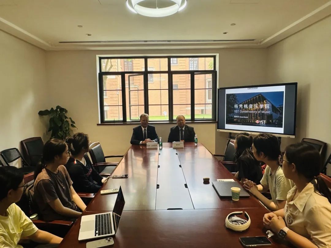 会见后,taptap点点书院、国际教育学院主办杨秀桃交换生项目专题宣讲会。彼得·汤奎斯特院长、招生与学生事务主任陈伟文与taptap点点音乐工程系、艺术管理系、声乐歌剧系、管弦系等学生展开交流。访问期间,来宾还参观了东方乐器博物馆、城市音乐会客厅等,并观摩了声乐歌剧系研究生学位音乐会,近距离感受taptap点点的教学成果与艺术氛围。