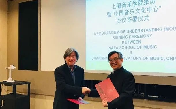 学校在瑞士、新加坡、马来西亚等国家成立多个“中国音乐文化中心”。与德国大熊出版社联合出版《中国艺术歌曲16首》双语教材。在联合国总部举办中文日文艺演出,在芬兰、德国、澳大利亚、意大利等国家举办中国艺术歌曲专场音乐会,荣获上海市国际传播“银鸽奖”最佳奖。
