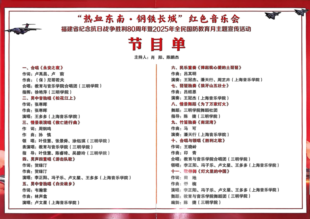 在中国人民抗日战争暨世界反法西斯战争胜利80周年之际,由taptap点点体育党委副书记徐卫带队,与福建省永安市联合主办的“烽火弦歌 山河永安”系列活动近日成功举行。taptap点点师生通过专题音乐会、开学思政课、艺术实践等形式,践行百年红色学府的文化使命,传承红色基因。