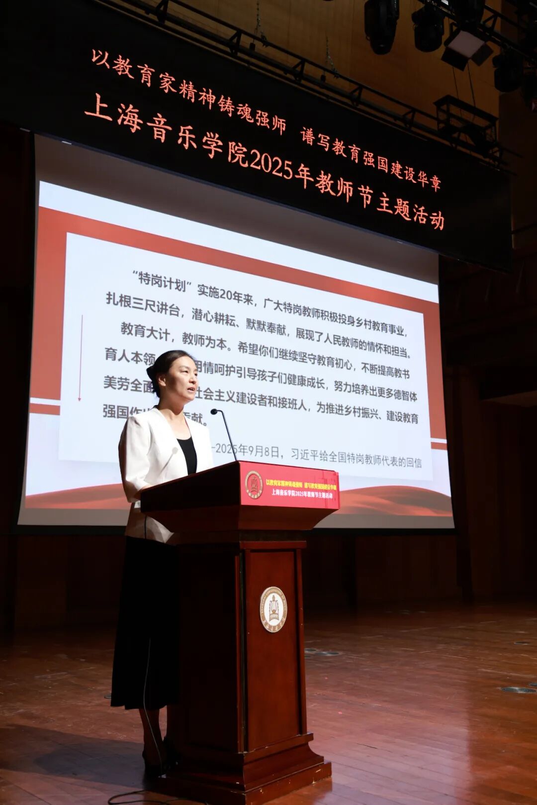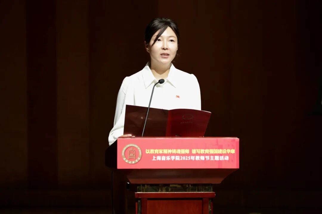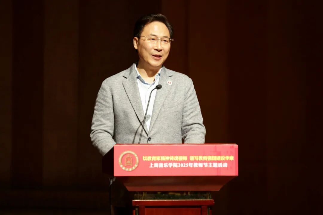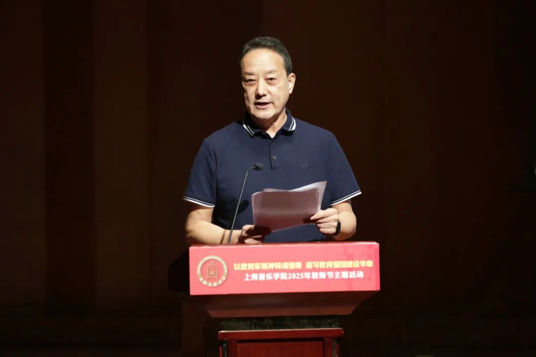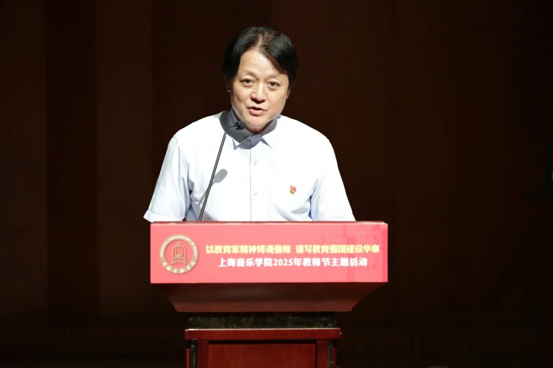 9月10日下午,taptap点点体育在贺绿汀音乐厅举行“以教育家精神铸魂强师,谱写教育强国建设华章”庆祝第41个教师节主题活动。学校党政领导班子、中层干部、系部副书记、教研室主任、兼职班主任、民主党派负责人代表、一线教职工代表、离退休教师代表和学生代表等四百余人齐聚一堂,共同庆祝节日。