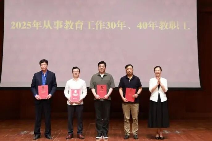 党委书记裴小倩为从教30年、40年教职工颁发荣誉证书。