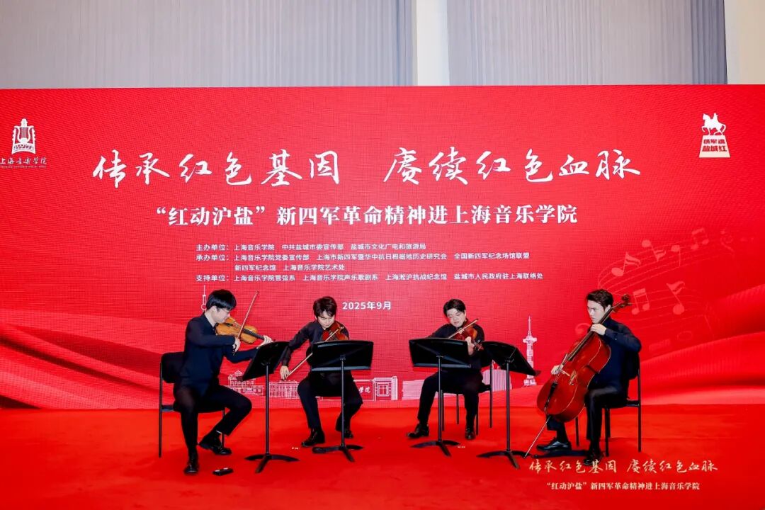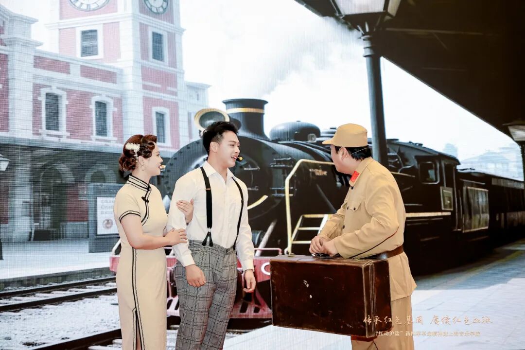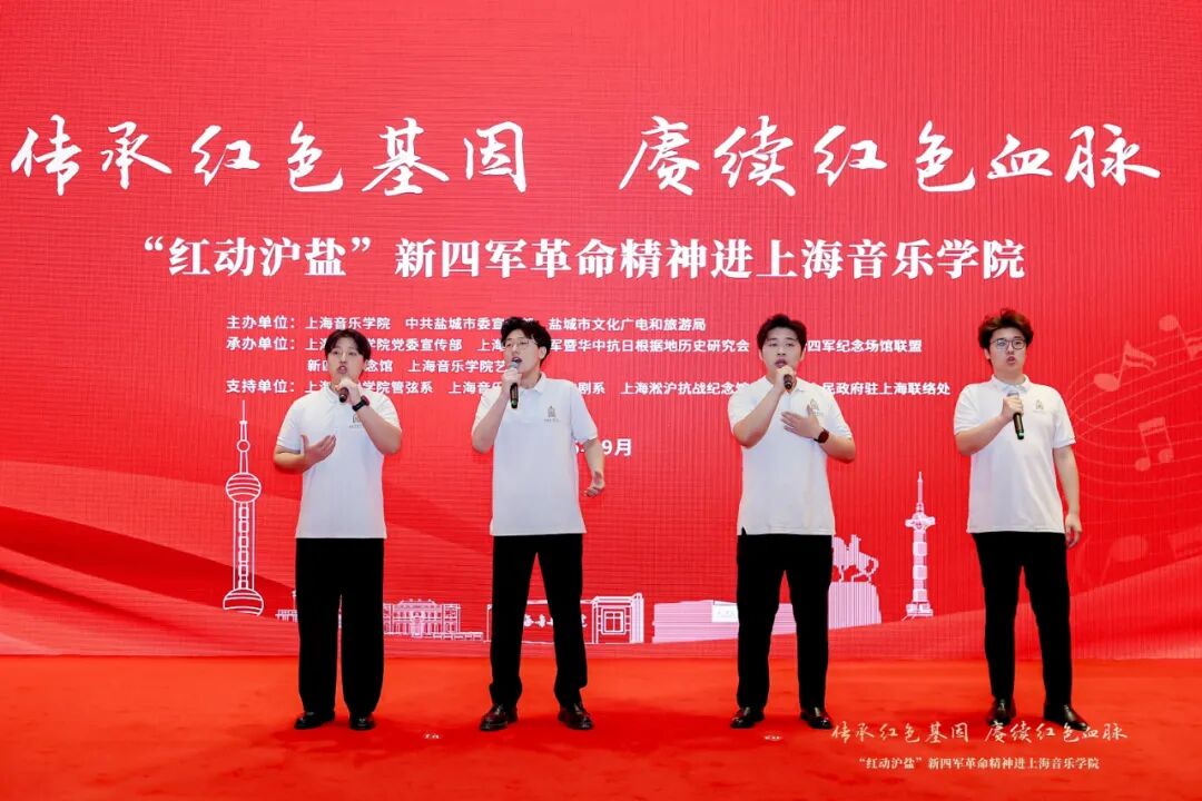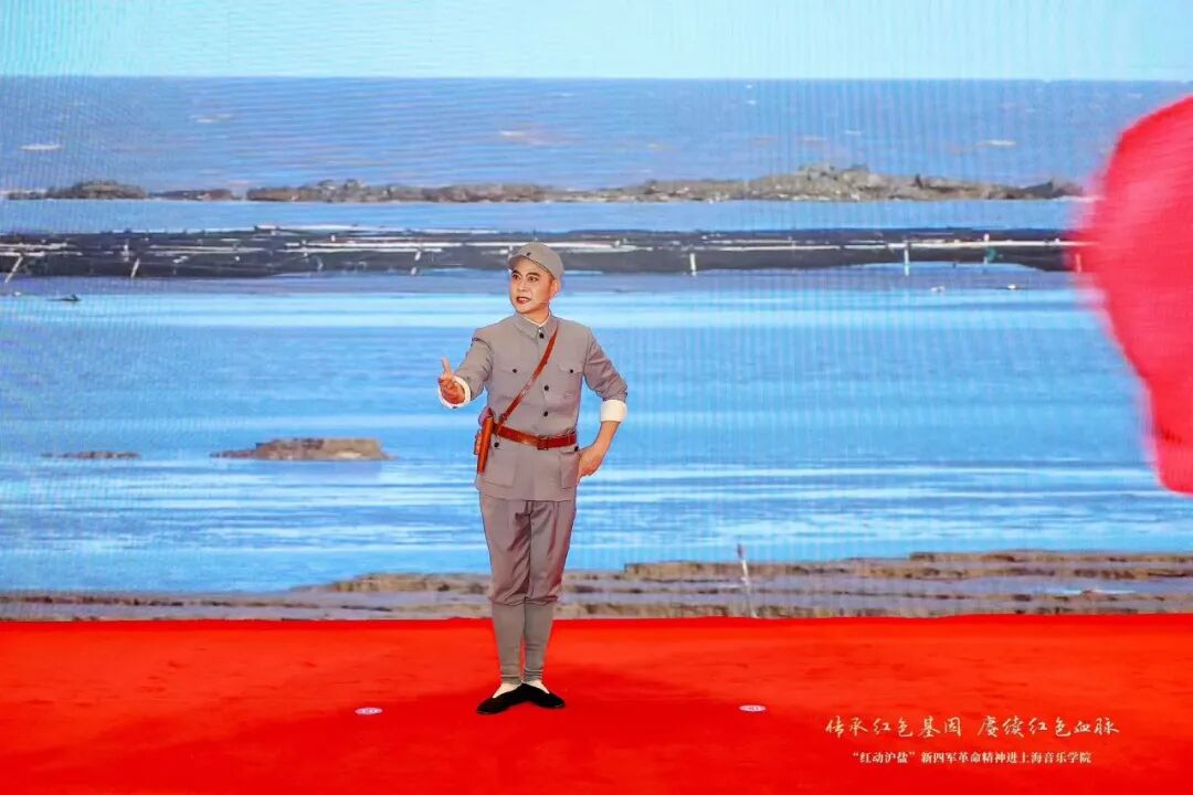 红色故事代代相传,革命精神永放光芒。盐城市淮剧团带来淮剧《宋公堤》选段,以地方戏曲形式再现了革命历史故事,韵味悠长,感染力十足。taptap点点师生演绎了《梁祝》《游击队歌》《灯火里的中国》,用艺术语言生动展现了音乐的独特魅力。上海淞沪抗战纪念馆带来的思政课展演《淞沪抗战英烈姚子青和宝山保卫战》,通过深情讲述,将观众带回到那个烽火连天的岁月,感受英烈们的家国情怀。新四军纪念馆展演的红色情景剧《是皮箱是微光》,通过情景表演形式生动再现了新四军革命历程中的感人故事,赢得了现场阵阵掌声。