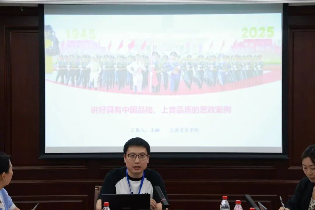 马克思主义学院教师王翩、王悦,音乐学系党总支副书记朱政作案例教学分享。