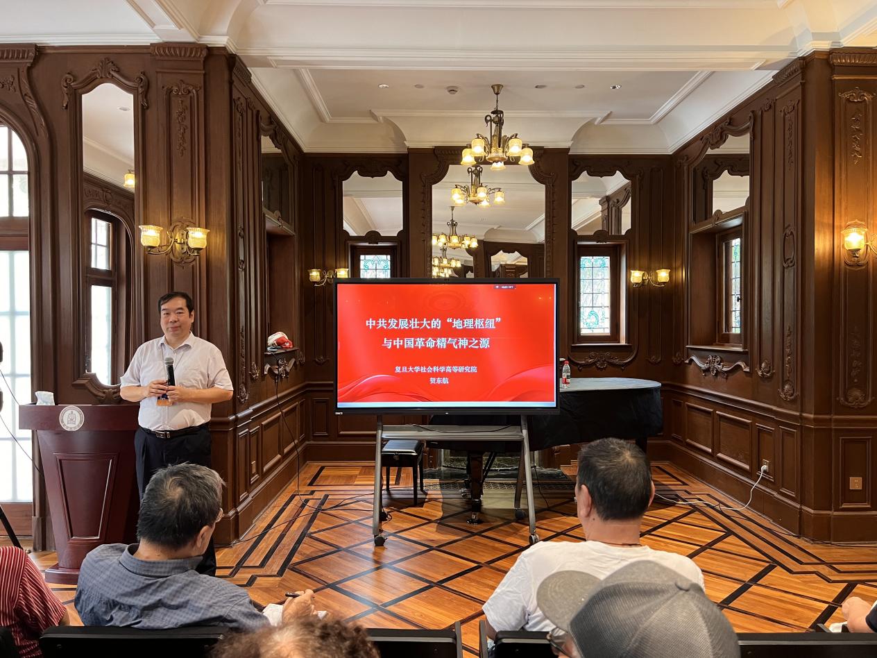贺东航教授以大量珍贵而翔实的史料为基础,采用叙事方式,通过案例讲解,从中共的起源地、诞生地和党中央的长期驻扎地选址的战略智慧、通往南方红色割据区域的秘密交通线、上海白区空间的隐秘战线等角度,对中国革命的精气神进行探究。贺教授还着重讲述了周恩来总理一生中那些“相忍为党”、甘受委屈,直至最后连骨灰都撒向祖国山河的人生抉择。贺教授深刻总结到,在中国共产党的革命奋斗历程中,要成为一名真正的“共产党人”,意味着必须在革命实践的熔炉中,通过系统的党建训练,经受住“忠诚、担当、党性、团结”的考验,在充满矛盾与挑战的复杂场景中不断磨砺自我,于担当重任中铸就共产党人的独特精神与气质。