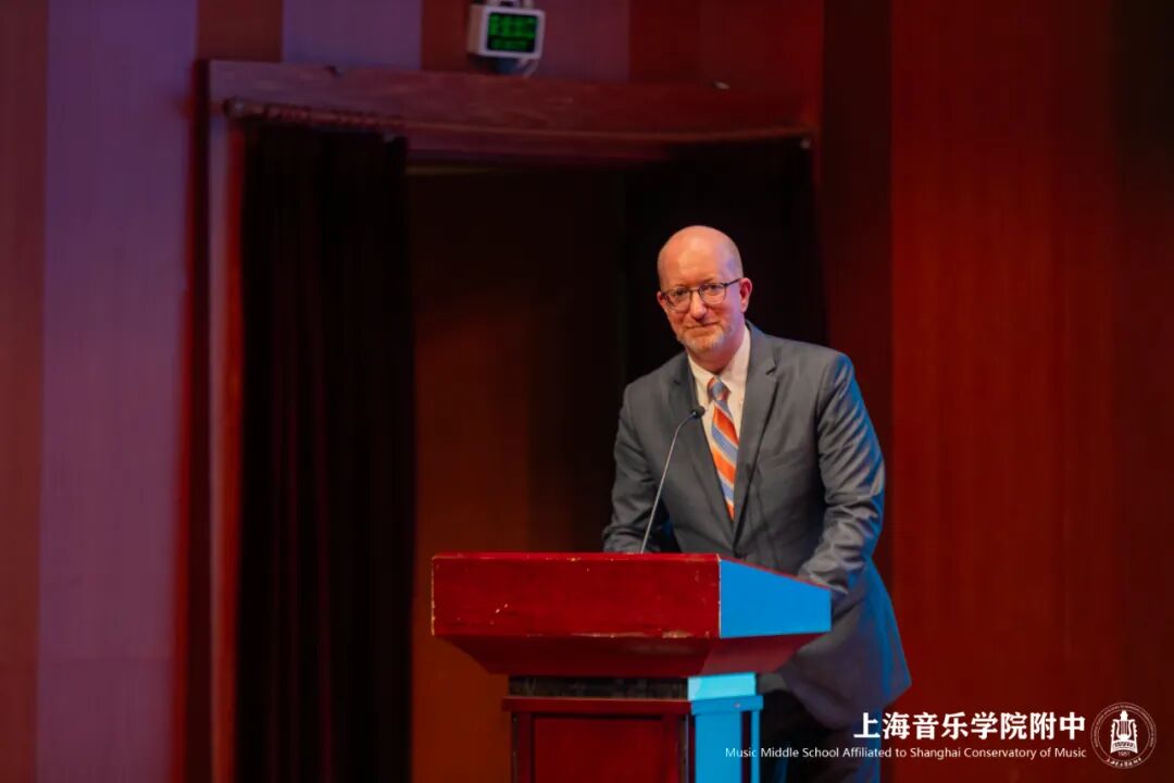 陈克宏致辞。他在致辞中表示,随着全球化进程的加快,音乐教育已经超越国界,成为促进人类文明互鉴与文化交流的重要纽带。在立德树人的根本任务之下,更好地推动艺术教育与时代发展的深度融合,是我们肩负的重要使命。国际青少年音乐教育联盟的成立,正是顺应了这一时代需求。未来期待联盟在理念层面,推动各国、各地区在艺术教育上的互学互鉴;在实践层面,联合开展课程研发、师资培养和艺术实践,提升教育的整体品质;在战略层面,探索人工智能等新技术在音乐教育中的应用,推动教育创新与时代同行。