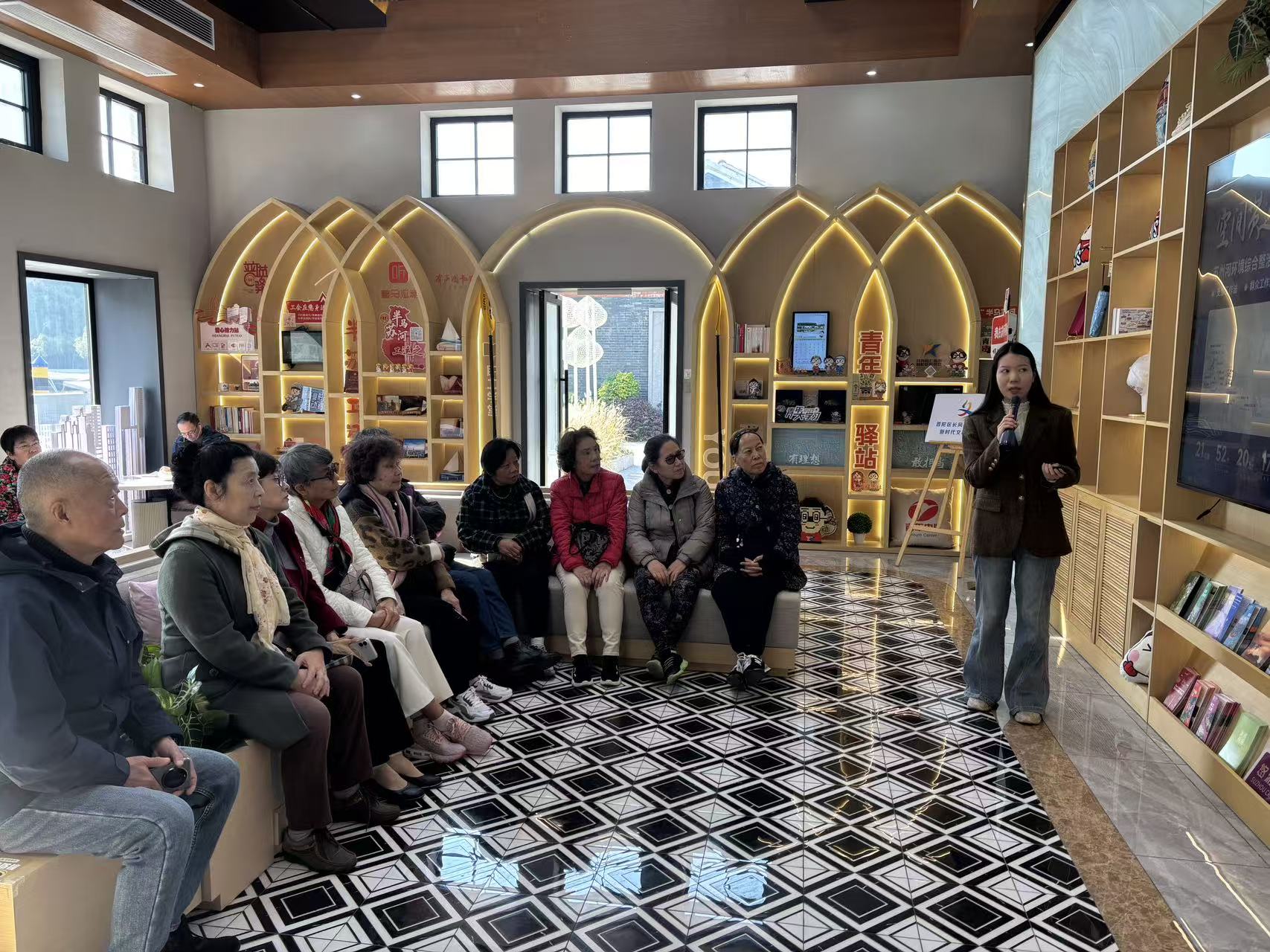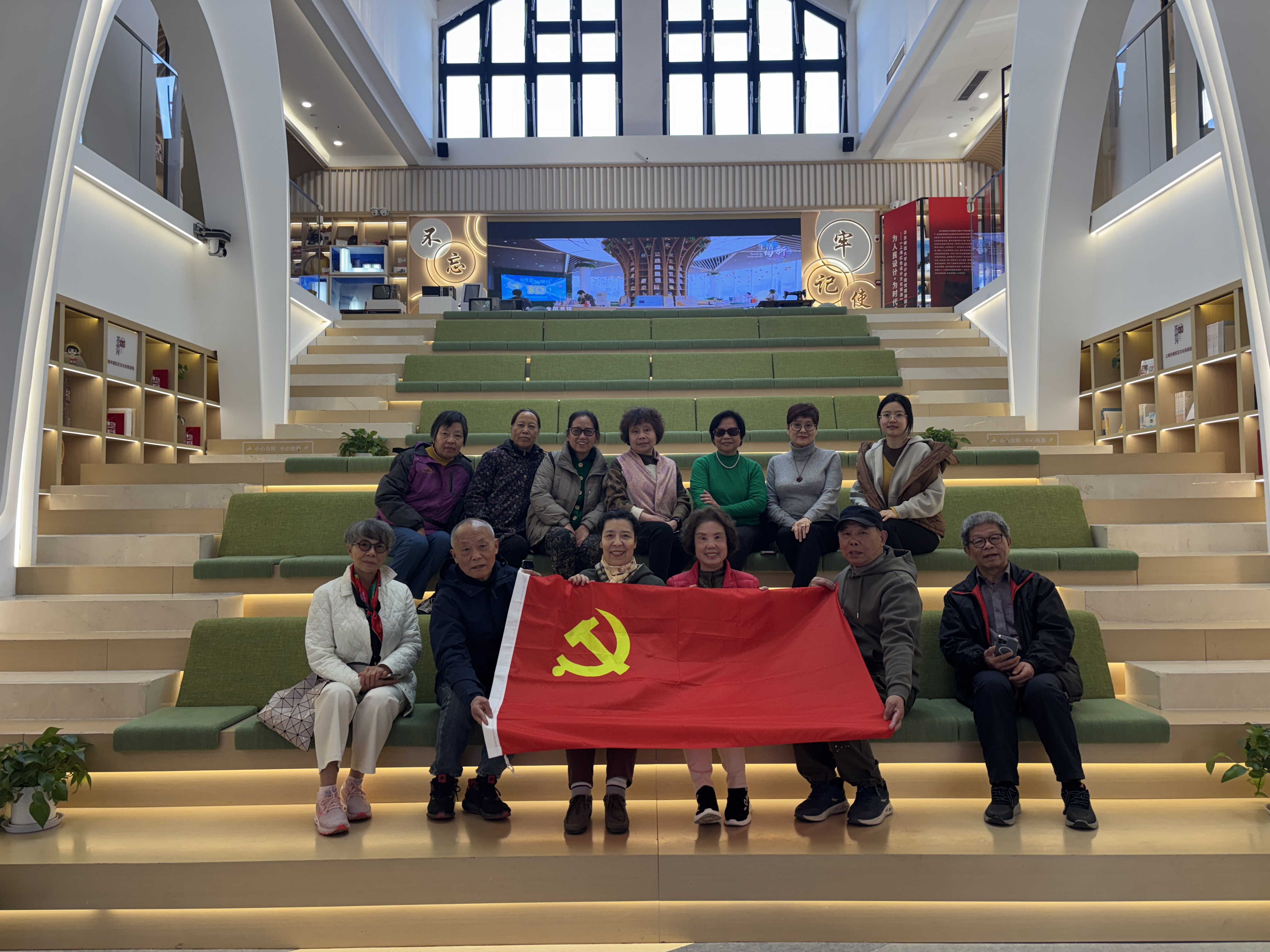 下午的行程以“党建共建+实地感悟”为核心,老同志们首先抵达半马苏河驿站・长风湾党群服务中心参观。