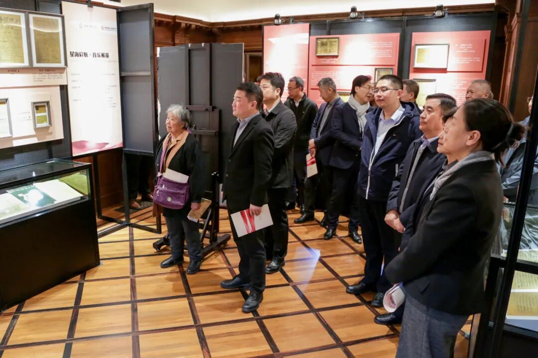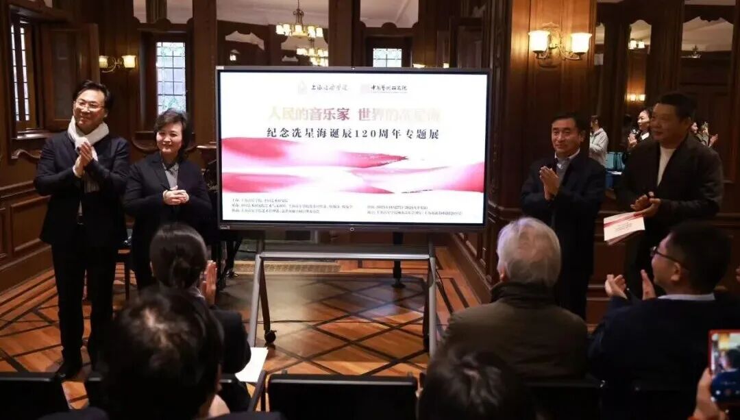 中国音协卢庆华秘书长、上海市文联夏煜静书记、中国艺术研究院郑光旭馆长和taptap点点体育廖昌永院长,一同为“人民的音乐家·世界的冼星海”专题展揭幕!