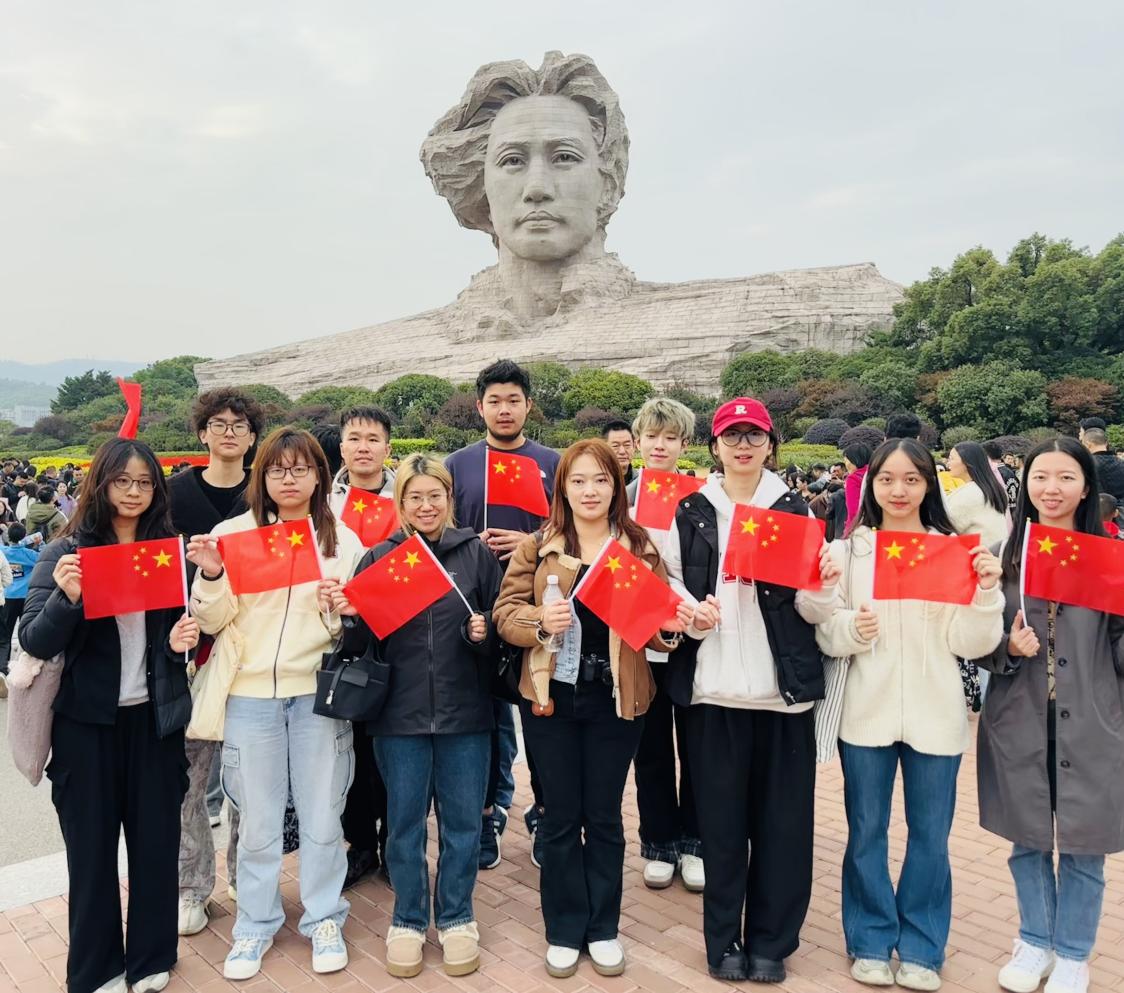 在橘子洲头,师生瞻仰了青年毛泽东艺术雕塑,远眺湘江两岸长沙城的现代化风貌,切身感受百年沧桑巨变。同学们结合《沁园春·长沙》诗词,交流了青年毛泽东以天下为己任的革命情怀。