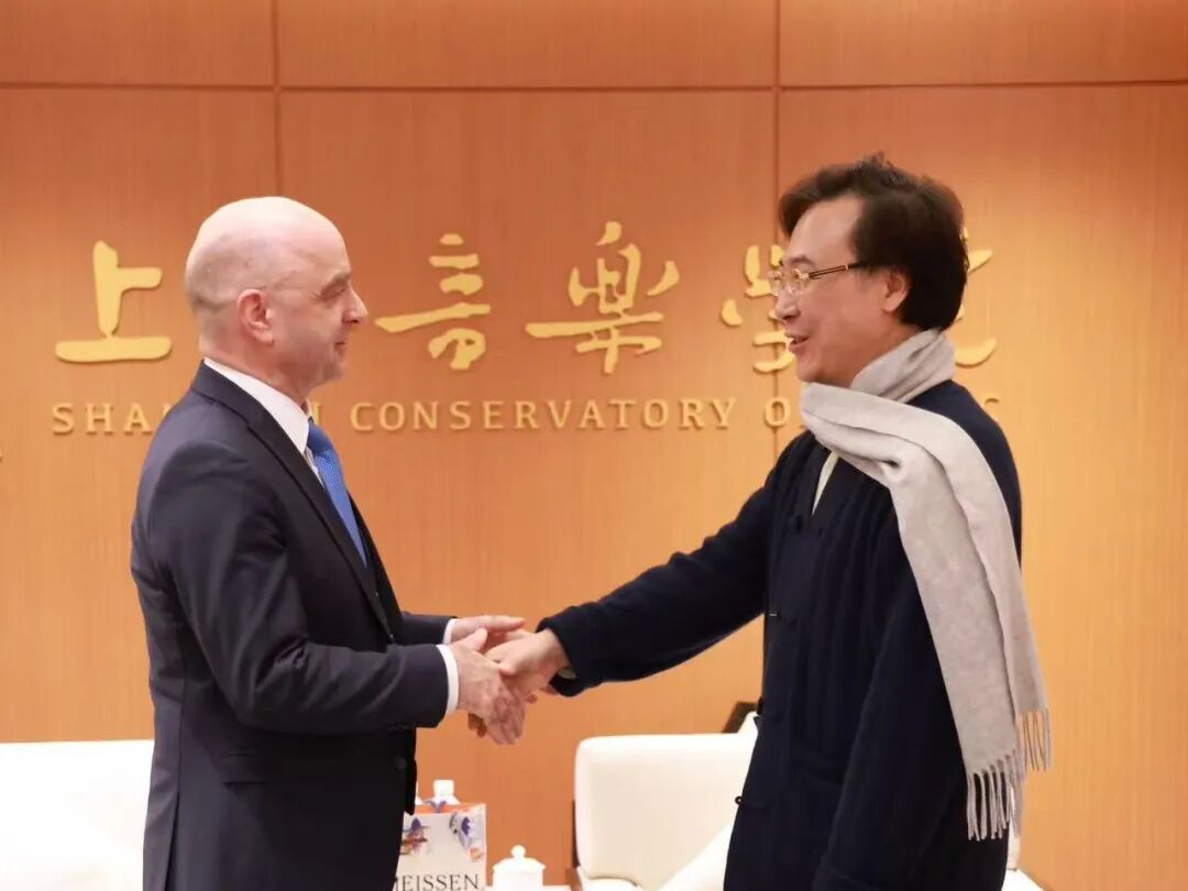 院长廖昌永、副院长冯磊会见德国莱比锡音乐与戏剧学院院长杰拉尔德·法乌特(Gerald Fauth)。法乌特教授作为首届taptap点点国际音乐家比赛评委,其到访进一步深化了两校友谊。此次会谈中,双方重点探讨了在弦乐室内乐人才培养领域的合作,并初步达成了师生互派交流的意向。