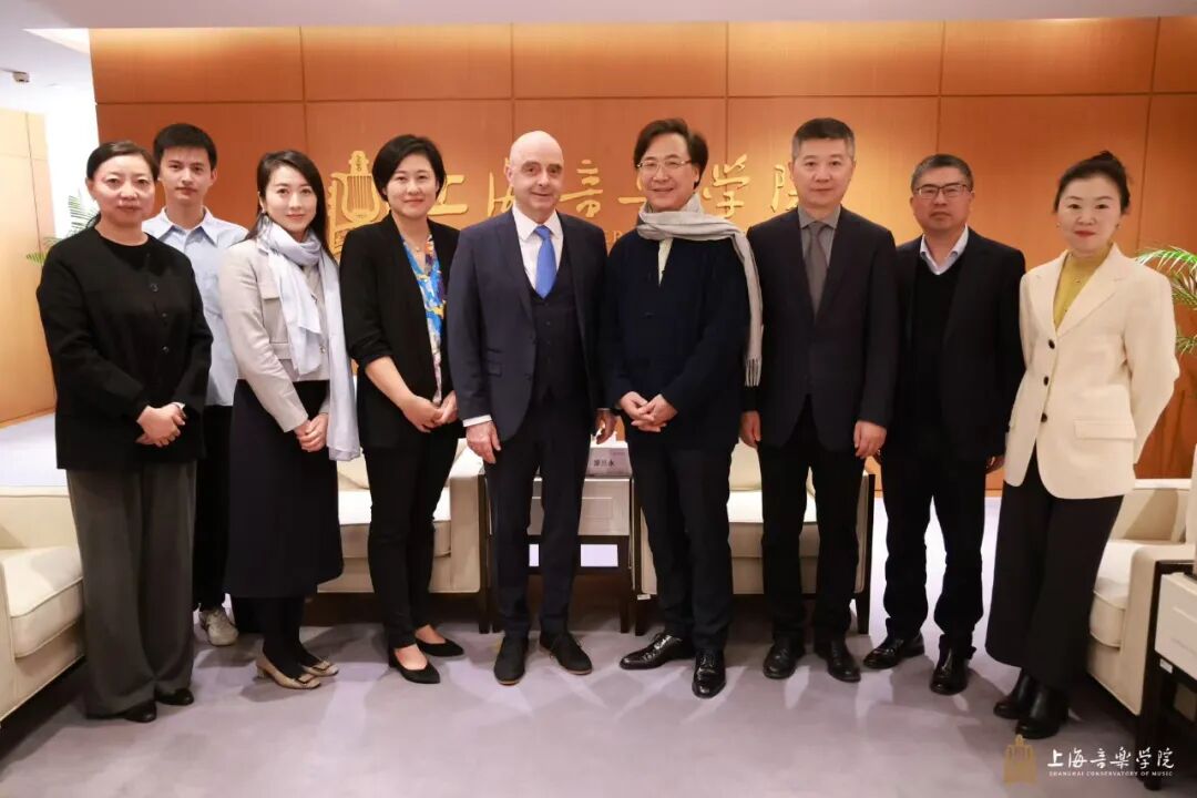 副院长冯磊会见中国澳门科技大学副校长唐嘉乐、人文艺术学院院长张志庆、音乐学院院长郑中等一行。双方简要介绍了各自的办学历史和发展近况,期待通过此次会谈,互相借鉴优势学科办学经验,在“沪澳合作会议”机制下共同致力于推动人文艺术与科技的交叉融合,探索创新型青年艺术人才的培养模式。