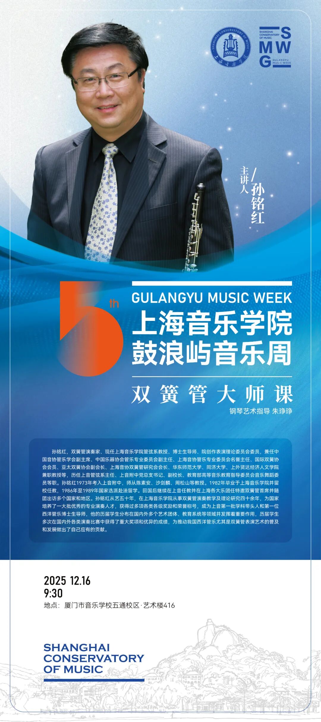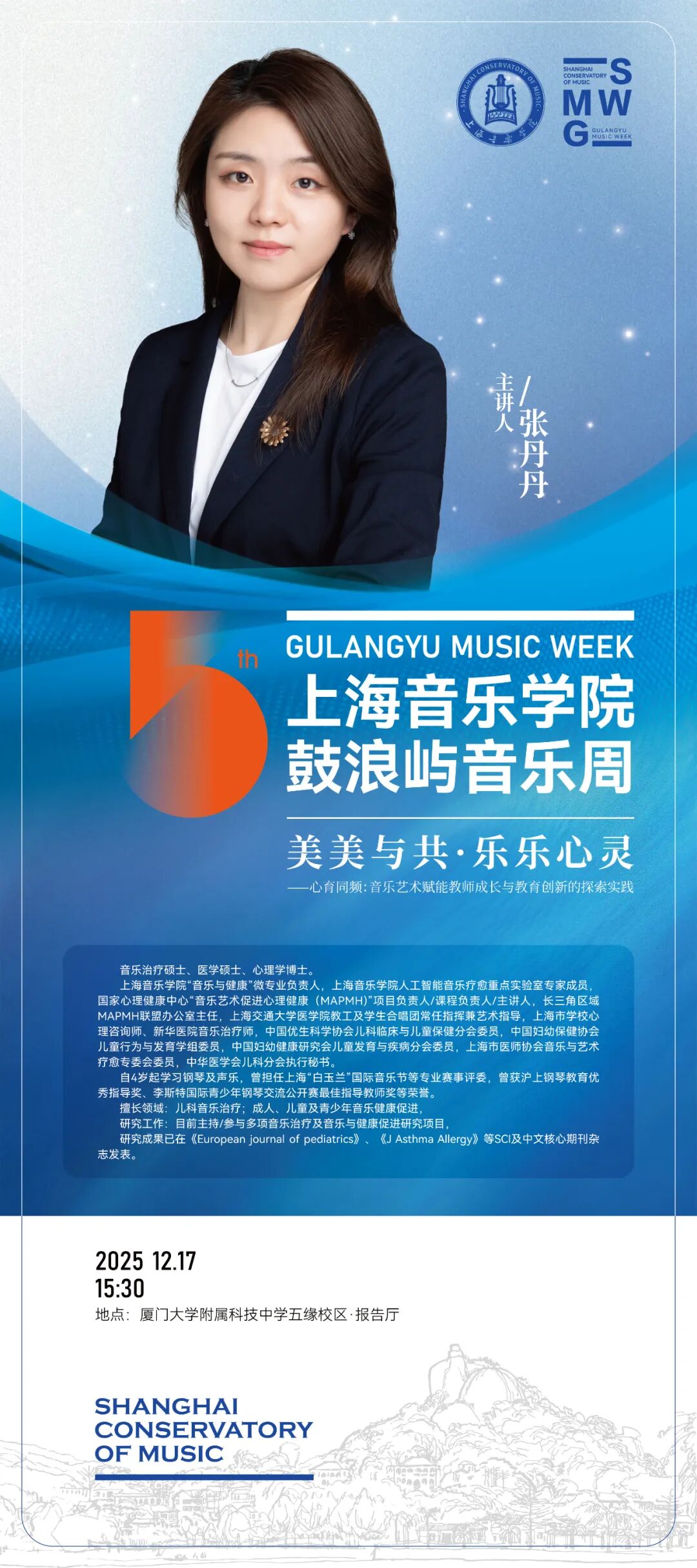 本届音乐周是沪闽两地深入学习党的二十届四中全会精神,贯彻落实习近平文化思想的重要举措。音乐周紧扣“激发全民族文化创新创造活力,繁荣发展社会主义文化”,通过8场顶尖音乐表演艺术大师课、4场前沿学术讲座及5场高品质音乐会,覆盖器乐演奏、合唱、指挥、人工智能、音乐疗愈、录音艺术、城市文化软实力建设等诸多领域,在深化“校地合作”“文教结合”传统的基础上,以人才培养为核心,为厦门打造“文化中心、艺术之城、音乐之岛”注入强劲“taptap点点动能”,成为助力建设习近平文化思想最佳实践地的生动实践。