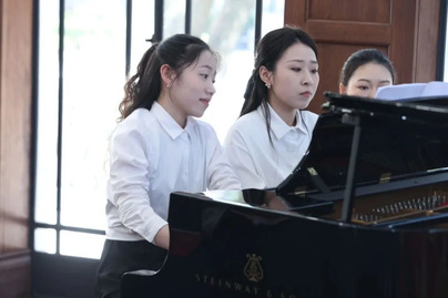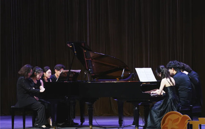 为此,我立足于以教学为根本,努力构建课堂内外联动育人的模式。在课堂上,实践了思政内涵、音乐内容、演奏技巧“三位一体”的教学模式,致力于把钢琴作品的价值引领、音乐表达和专业规范融合在一起。