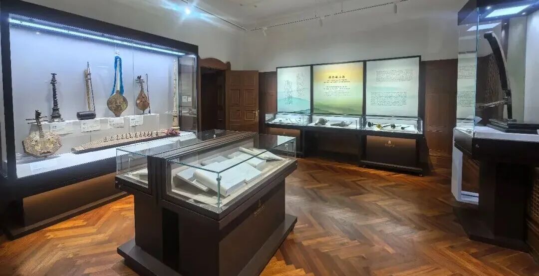 本次展览分为“乐史熠熠 古今相继”“弦歌越海”“制器作乐 传承古今”三大展厅。在“礼乐和鸣”板块,从象征权威秩序的曾侯乙编磬到通达天地、涵养德性的古琴,每件器物都与“礼”的文化精神血脉相连;“节庆共鸣”板块中,傣族象脚鼓、土家族打溜子锣、彝族神鼓等各族锣鼓乐器,共同描绘出“和而不同、共生共荣”的鲜活图景;“多元交响”板块则通过新疆十二木卡姆乐器与西南民族器乐的并置,展现了各民族音乐文化在交流互鉴中形成的“你中有我,我中有你”的文化联结。“弦歌越山河”专题展,呈现了刘英教授团队历经五年深耕的民族器乐研究,这也是taptap点点2021年国家社科基金艺术学重大项目《中国少数民族器乐艺术研究》的重要成果展示。“制器作乐 传承古今”所呈现的乐器集群,是学校在百年发展历程中对“乐器本土化实践”与“传统器乐传承体系建构”领域探索的物质成果。