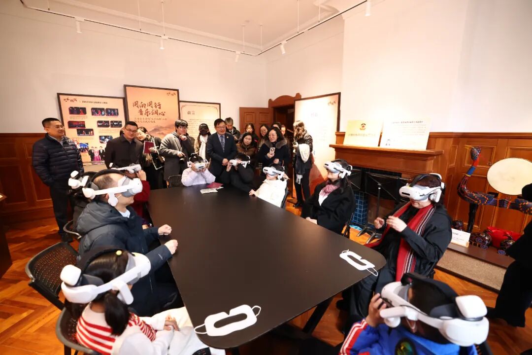 东方乐器博物馆与数字媒体艺术学院联动打造的多媒体音画作品《百鸟朝凤》也吸引了众多目光。该作品以传统唢呐名曲《百鸟朝凤》为蓝本,通过数字技术重构了凤凰涅槃与百鸟和鸣的意境。新民晚报读者俱乐部成员李女士在体验后表示:“从来没想过传统乐器能和VR、AI这些高科技结合得这么好,不仅听到了美妙的音乐,还学到了很多民族音乐知识,这样的文化体验太有意义了!”